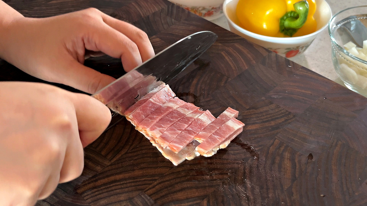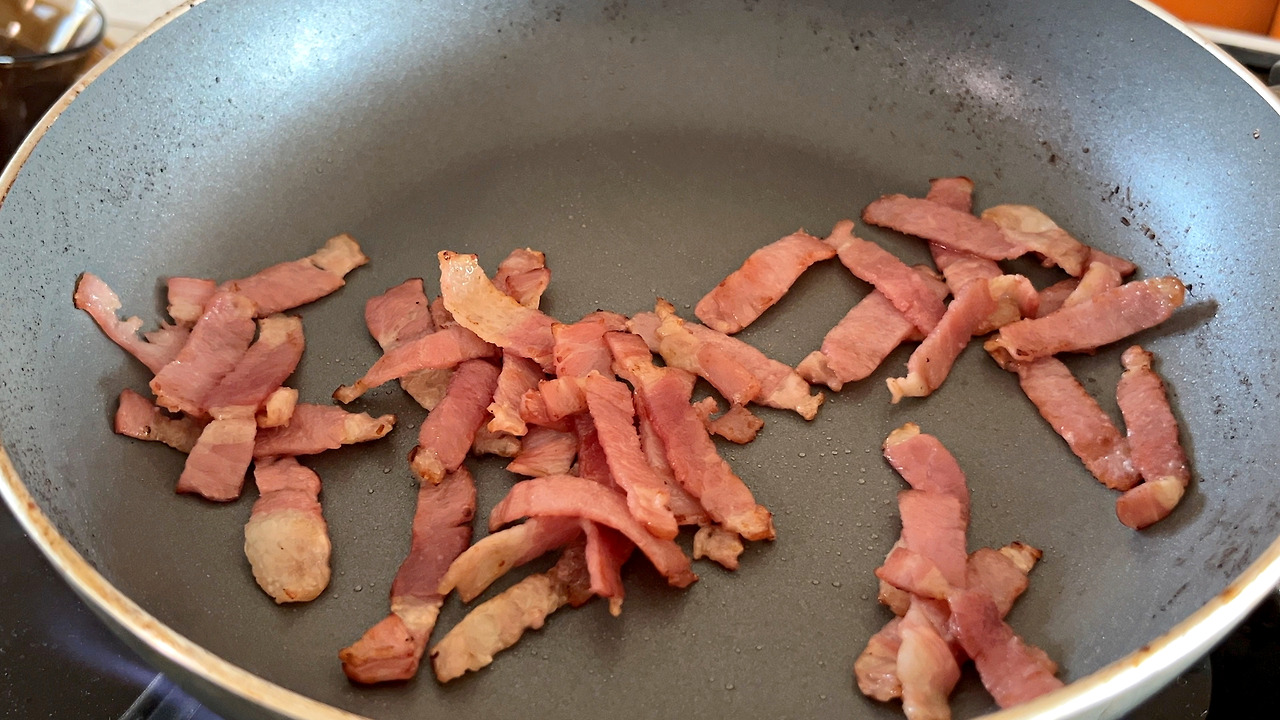 2. 베이컨은 굵게 다져 바삭하게 구워 준비한다.