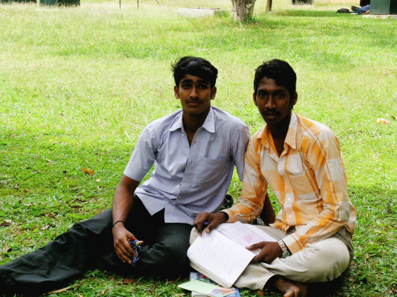 잔디에 앉은 두 남학생이 휙~ 휘파람을 불며 사진을 찍어 달라고 한다. 멀리서 사진을 찍어주었고 자신들이 찍힌 걸 확인을 하지도 않았는데 방긋 웃으며 너무 좋아했다.