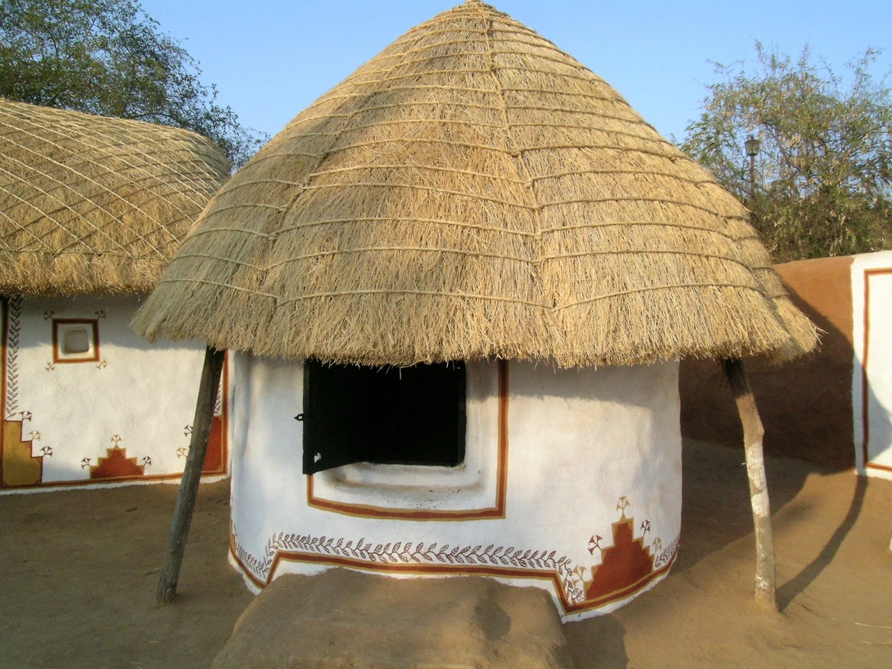 전통 흙집이라는 오두막 집은 우리나라의 초가집과 비슷한 지붕을 한 모양이었는데 안 쪽으로는 생각보다 단단해 보이고 예쁘게 그림으로 꾸며 놓아서인지 며칠 묵어봐도 좋겠다는 마음도 들었다. 기회가 된다면 이 라자스탄 지역에는 다시 와서 며칠 살아보고 싶다. 이 실프그람에서 떠나고 싶지 않았는지 해가 저물어가는지도 모르고 있었다. 아쉬움에 마을 사람들에게 손 인사를 날리며 내려오다 보니 금세 캄캄한 밤이 되어버렸다. 그들도 끝까지 손을 흔들어 주었다.