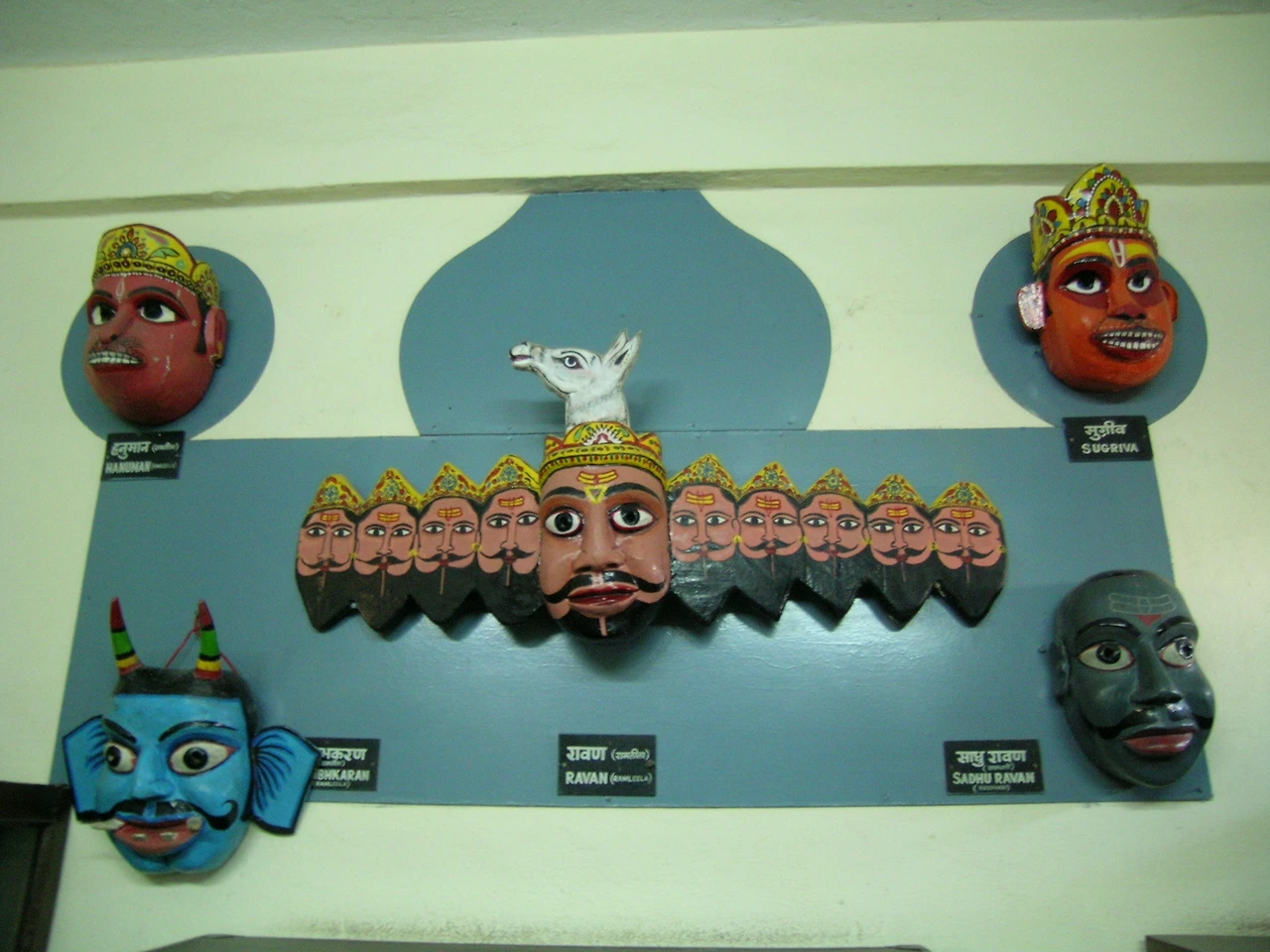 “이 마스크는 라바나(Ravan)인데 머리가 10개야, 랑카에 사는 악마의 왕이지. 이건 하누만(Hanuman)….”
