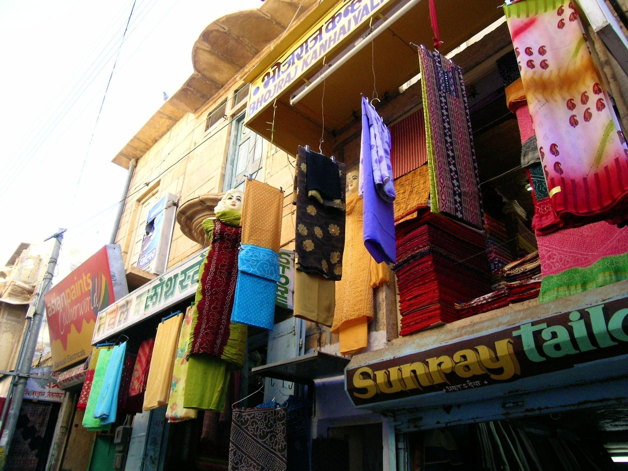 루프탑이 있는 레스토랑에 가서 아침 겸 점심 식사도 하고 골목 구석구석을 누비는데 옷감을 팔고 있는 숍에서 붉은색 바탕에 낙타 모양이 그려져 있는 옷감이 매우 마음에 들었다. 옷감을 구입하고 파자마 바지를 만들어 달라고 부탁을 했다. 인도에서는 어느 지역 어느 시장이든 이렇게 옷감을 사고 테일러에게 옷을 만들어 달라고 할 수 있는데 간단한 것은 당일에 찾을 수도 있고 사리(Saree)와 같은 인도 전통 의상은 치수를 모두 재서 만들어 주는데 빠르면 3일 일반적으로 5일에서 일주일 정도 소요 된다고 한다. 인도에서 가장 좋았던 것 중 하나가 남녀 할 것 없이 대부분(델리를 제외하고) 인도 전통 의상을 입고 다니는 것이었는데 다양한 색감과 무늬, 여러 의미가 있는 패턴과 상징, 그에 어울리는 액세서리들과 머리의 꽃 장식이 매우 찬란하고 아름다웠다. 남자들은 도티를 입고 여자들은 대부분 사리를 많이 입는데 그중에서도 사리는 지역에 따라서 매는 방법이나 천의 길이도 다 달랐다. 여건이 되면 사리를 지어서 입고 싶었는데 한국에서는 입을 수가 없을 것 같아서 마음을 접었는데 지금에 와서는 조금 아쉬운 마음도 든다.