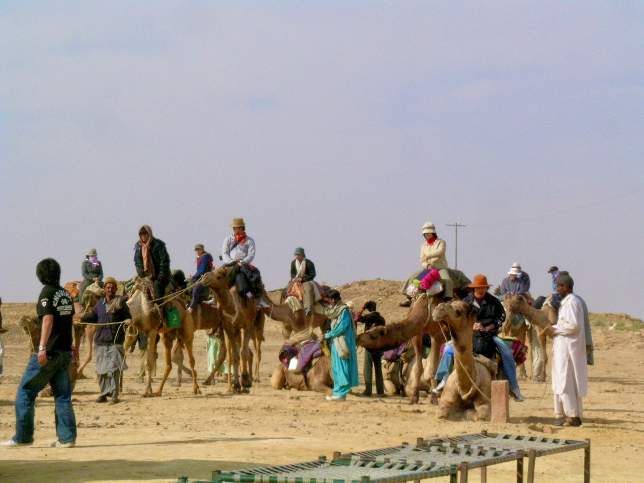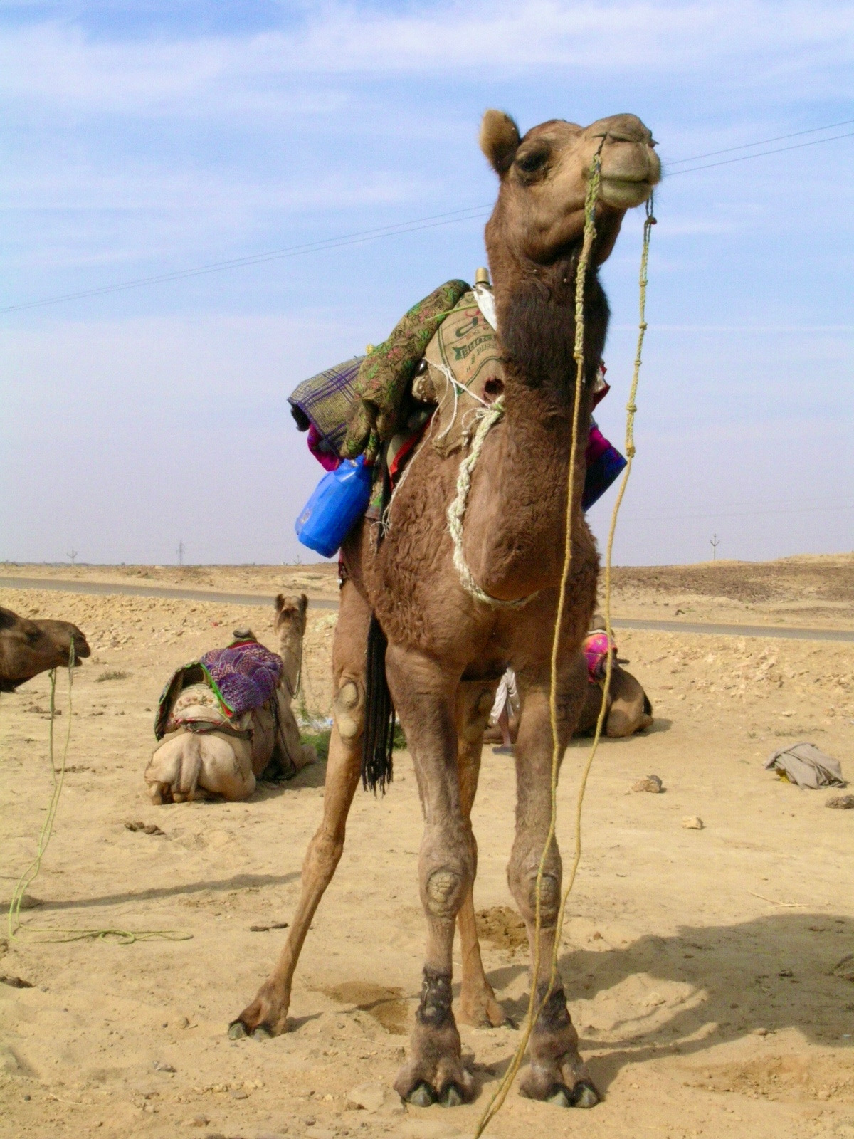 조용한 사막길에 바람이 없어 방울을 달고 찰찰 거리며 걷는 낙타의 발굽 소리는 멀리 퍼져나가지 않고 주위만 맴돌았다. 사막을 가로지르며 물을 길어 오는 아낙네들도 만나고 차를 타고 지나가는 사람들도 만났다. 그렇게 조금은 실망한 사막길을 한 시간쯤 가다가 바나나를 먹는 휴식 시간이 생겼다.