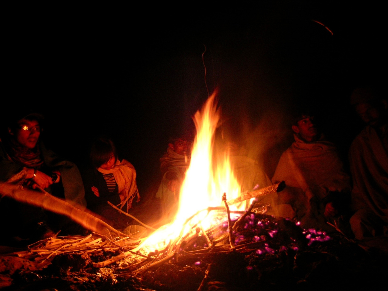 해가 지고 나면 차가운 바람이 어디에선가 불어오고 캄캄한 사막의 밤을 재촉한다. 방금 전까지 뜨거웠던 사막은 체감상 영하의 날씨로 떨어지는 듯 손끝, 코끝이 시려온다. 낮에는 40도가 넘어가고 밤에는 10도 언저리가 되다 보니 극심한 기온차에 사람이 얼어 죽는다는 말이 무엇인지 피부로 느껴졌다. 크루는 분주했다. 짜파티, 뭔지 모르는 볶음밥 같은 것을 저녁으로 주고 모닥불을 피우고 흥을 돋우기 시작했다. 한국말을 할 줄 아는 크루는 한국에서 요즘 유명한 연예인은 누구인지 물어보며 흥얼거리고 크루 중 어떤 청년은 춤도 추고 노래도 불러준다. 인도 사람들의 흥은 내적 흥부자인 나도 따라가기 어려울 정도. 도대체 어디서 저렇게 흥이 나오는 것일까? 인도 영화에서 보던 떼창과 군무를 인도 곳곳에서 볼 수 있다는 사실만 보아도 흥은 입증된 셈이 아닌가 싶지만.