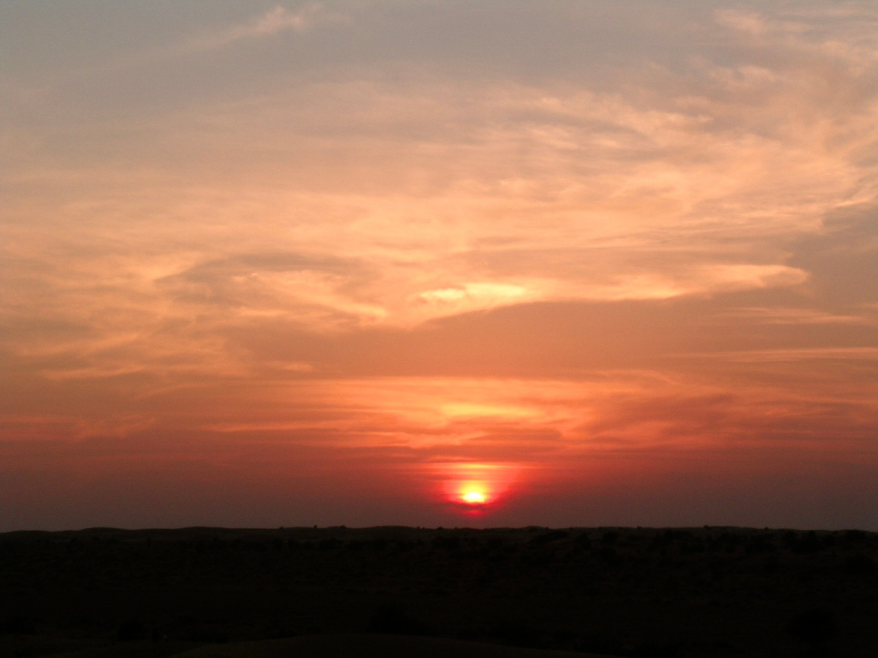 바람 한점 없지만 주위에 보이는 커다란 모래 언덕으로 올라가서 지는 해를 바라봤다. 바람이 멈추니 시간도 멈춘 듯 세상이 너무나 고요했고 조금씩 변해가는 아름다운 노을만이 시간의 흐름을 느끼게 해 준다. 노을이 이렇게 아름다운 색이었던가. 이 뜨거운 사막의 모래 언덕에 앉아 바라봤던 매홍색 선셋(Sunset)이 아직도 가끔 생각이 난다. 해가 질 때 원래 이런 색이었나? 한국에서는 알 수 없었던 노을의 아름다움, 사진에도 담기지 않는 이 자연의 오묘한 색을 바라보니 경이로움과 경탄이 저절로 나왔다. 지금까지 느껴본 자연 속에서 느낀 최고의 감동 중 하나였던 만큼 그 순간을 잊을 수가 없다.
