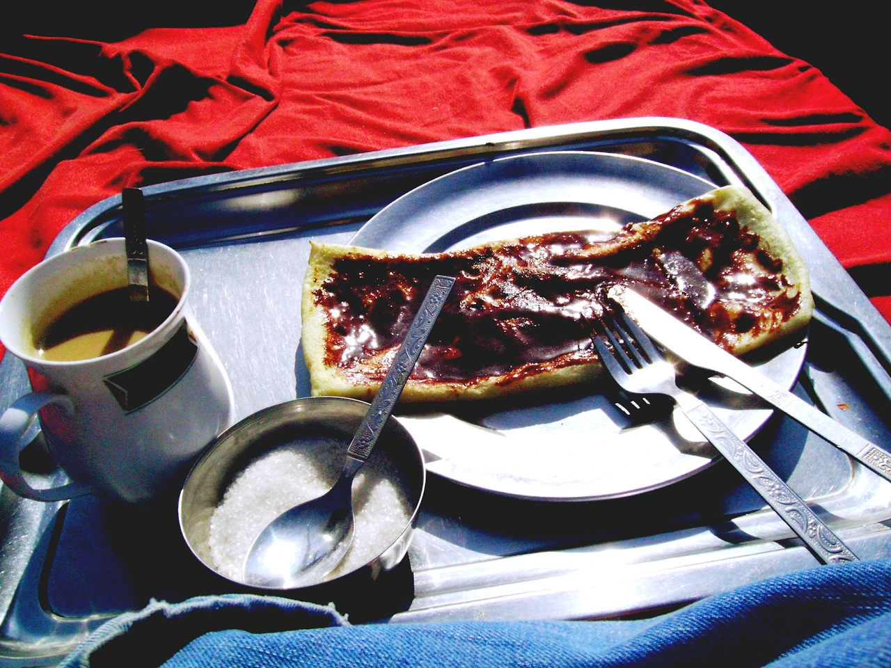 동이 틀 무렵 크루들이 분주히 아침을 준비하며 불을 지피기에 앞에 가 앉아 불을 쬐기 시작했다. 아직 사람들이 일어나지 않았지만 끓이기 시작한 짜이를 기다릴 수 없어 크루원들과 함께 마셨다. 아침에 마시는 짜이 한잔은 차가워진 온몸을 따뜻하게 데워준다. 토스트, 쿠키, 귤, 삶은 계란을 만들어주는 크루들, 간단하지만 사막에서 먹는 아침 식사로는 최고였다.