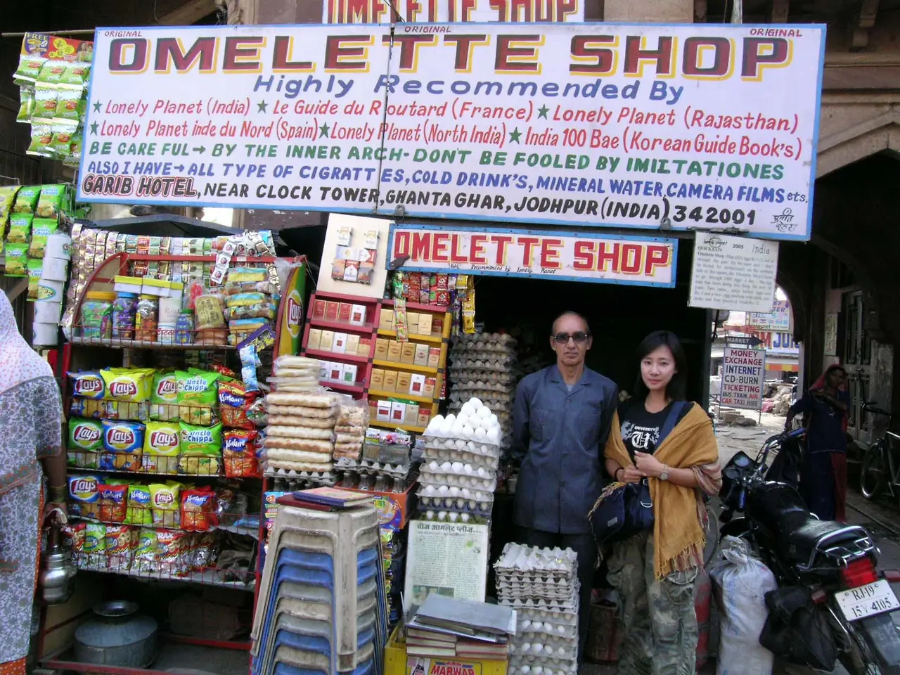 이곳에는 누구나 알고 있는 오믈렛을 파는 유명한 가게가 있다. 길을 가다가 물어봐도 누구나 알려주는 이곳은 이름도 그냥 오믈렛 숍(Omelette shop)이고 매우 작은 노상 슈퍼처럼 보였다. 오믈렛 전문점도 아니고 과자나 음료수 같은 군것질 거리와 담배 같은 것도 팔고 있었다. 직접 먹어보니 눈물이 날 정도로 맛있거나 화려한 오믈렛은 아니어서 의아했다. 왜 그렇게 유명해진 걸까 싶어서 자세히 살펴보니 ‘론리 플레닛 인도 편과 라자스탄 편, 프랑스, 스페인, 북인디아 여행 가이드, 인디아 100배 즐기기 한국 가이드 북’에서 추천하는 곳이라 적혀있었다. 그리고 오믈렛을 사 먹으면 오믈렛 숍 아저씨가 사진을 함께 찍자고 하며 사진을 꼭 보내달라고 말한다. 어디로 보내면 되냐 물어보니 간판을 가리킨다. 간판에는 이 오믈렛 숍의 주소가 적혀있고 이 가게 밖에는 보낸 몇 백장의 사진들이 수두룩하게 붙어 있다. 물론 명함도 따로 내어주셨다. 아마 마케팅의 힘이란 이런 것이 아닌가 싶다.