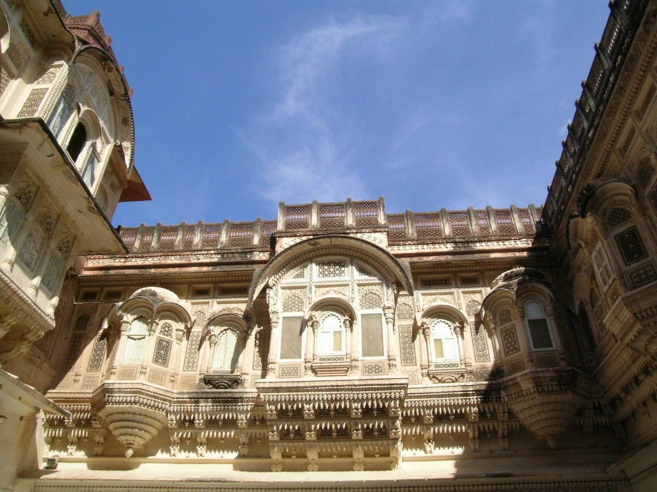 태양의 성이라는 뜻의 이 메헤랑가르 성은 인적 없는 타르 사막 위 122m 높이로 솟아 있는 사암 언덕 지대에 있다. 이 성 안에는 여러 개의 아름다운 궁전들이 있으며 잘리(Jali) 무늬의 다양한 사암 창문들, 넓은 안뜰, 코끼리 공격을 막을 수 있는 로하폴(LahaPol), 천장과 벽의 그림들로 여전히 그 웅장함과 아름다움을 보존하고 있다. 죽기 전에 꼭 가볼 세계 역사 유적 리스트에도 올라있기에 인기가 많은 곳이다.