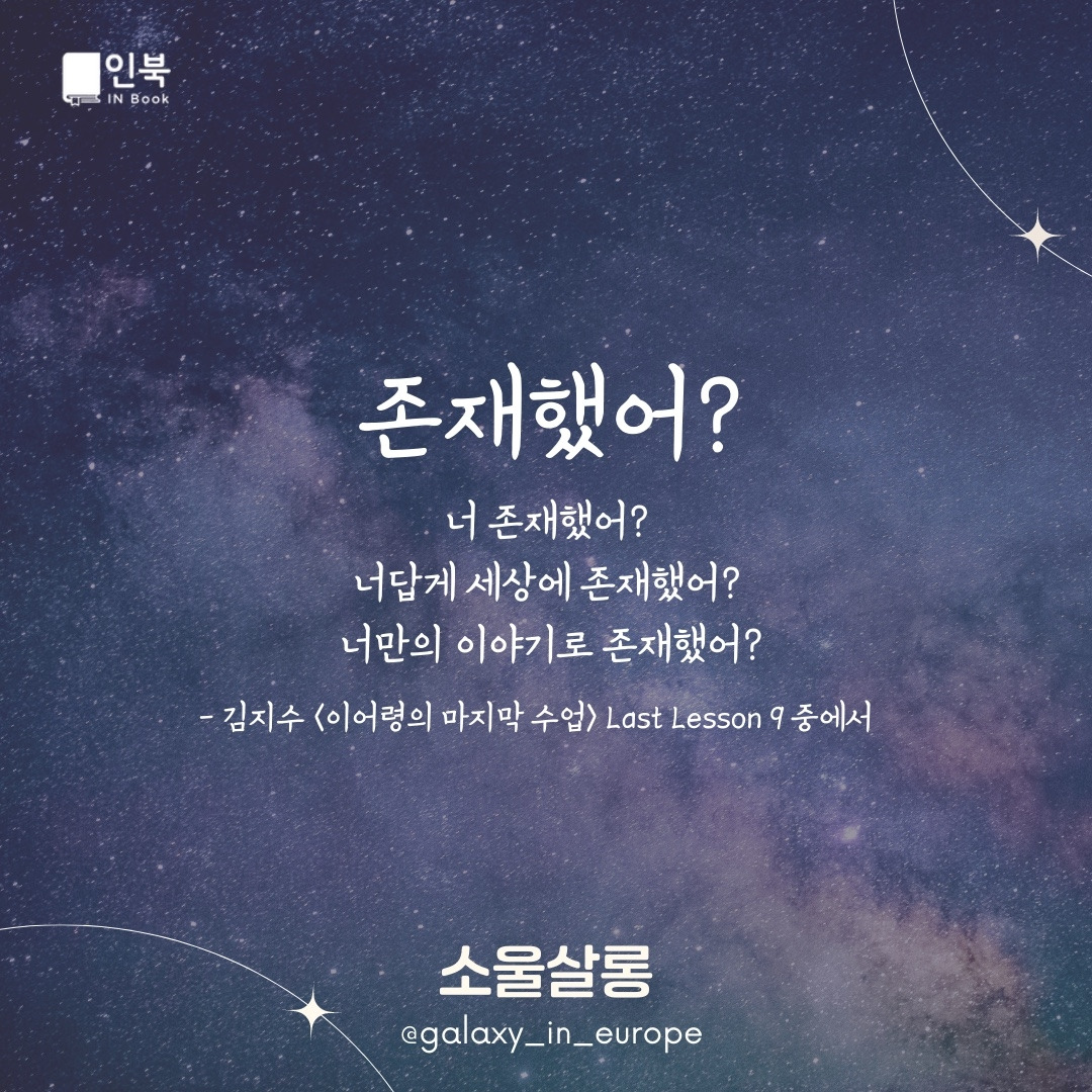 '나는 존재하고 있을까? 나답게 세상에 존재하고 있는가? 나만의 이야기로 존재하고 있는가?'