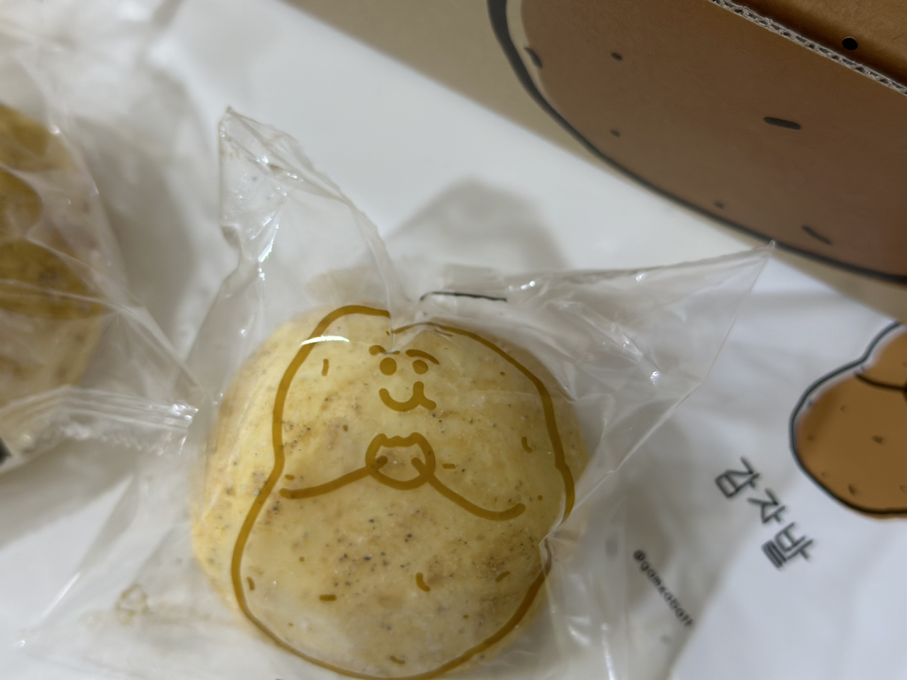 감자를 똑 닮은 빵이, 이른 새벽 내 손으로 들어왔다. 감자가 강원도의 어느 밭에서 싹을 틔우고, 누군가에 의해 세상의 빛을 받고, 뜨거운 물에 들어가 무른 물질로 변화하고, 다른 재료들과 만나, 다시 감자모양을 가진 또 다른 감자가 되었다. 일명 이 '감자빵'은 고향에 남아 커피 냄새가 솔솔 나는 가게에 진열되기도 하고, 전국 각지로 흝어져 사람들의 문 앞으로 이동한다.