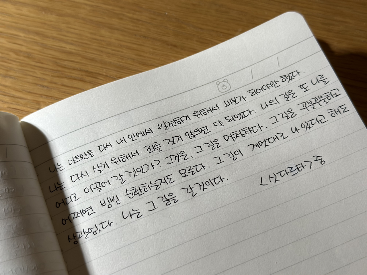 어디서 들었는지 기억나지 않지만, "좋아하고 잘하는 일은 도전할수록 계속 바뀐다"라는 말을 좋아한다. 지금 내가 무엇을 하는 건지 불현듯 현타가 세게 올지라도, 누군가의 눈에 내가 안쓰러워 보일지라도 일단은 가야겠다. 뭐든 도전해 봐야겠다. 그 과정이 조금 멍청해 보일지라도, 꾸불꾸불 빙빙 순환하고, 길이 제멋대로 나 있다고 해도 상관없다.