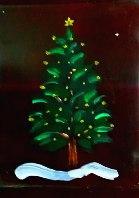 나무에 두르고 반짝이 별을 그려 붙이며