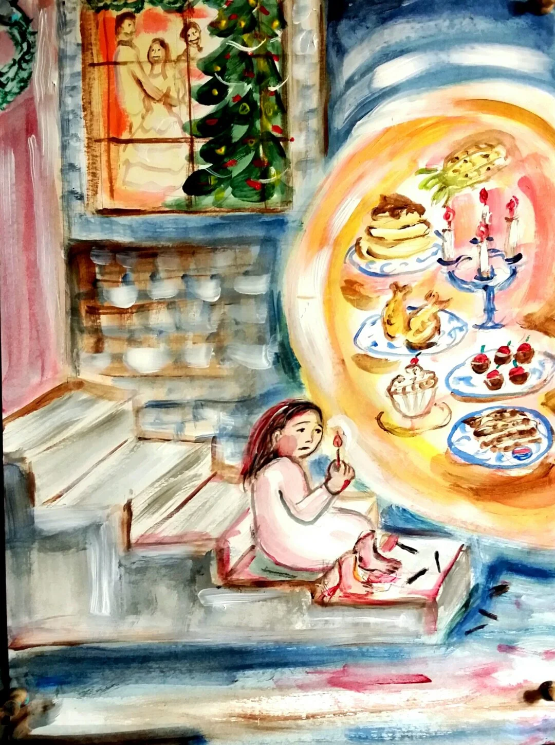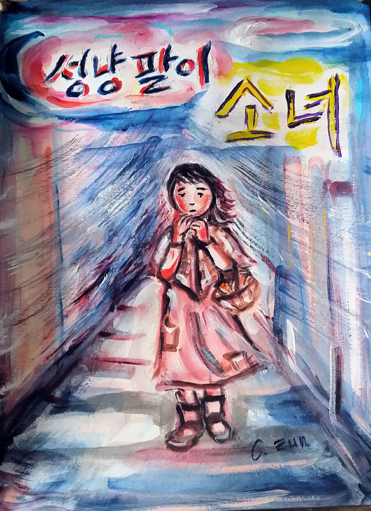 어릴 적에 읽었던 동화 성냥팔이 소녀를 그려보았다