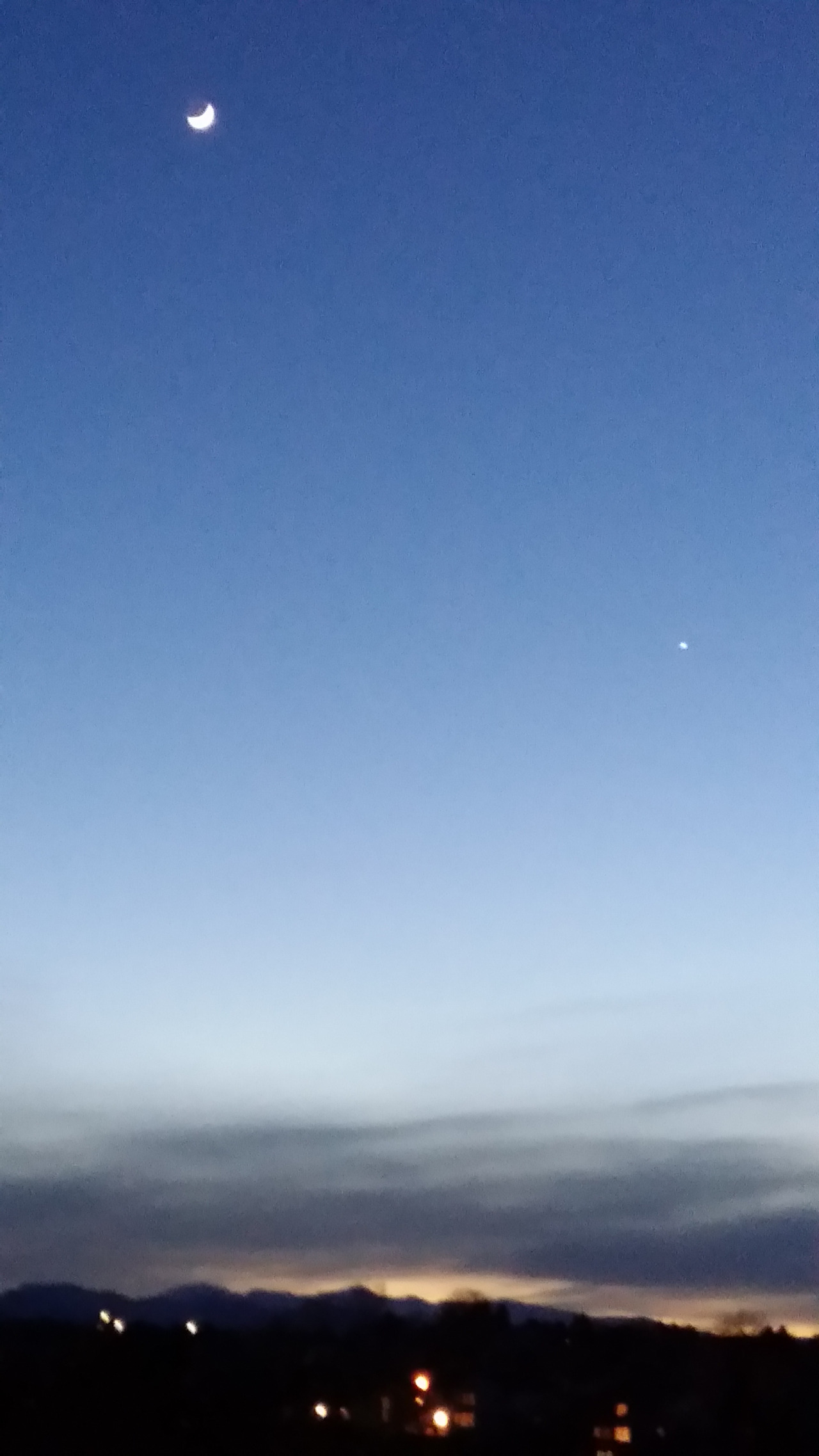 어두운 밤 하늘을 빛내는 선명한 초승달이다..