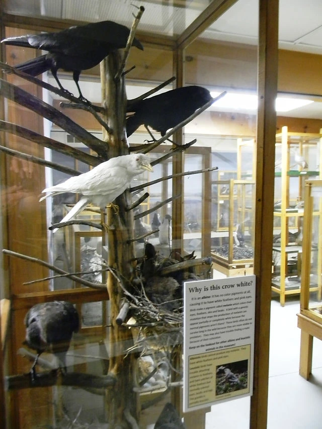 플라스틱 가지에 앉아 방문객을 응시한다.
