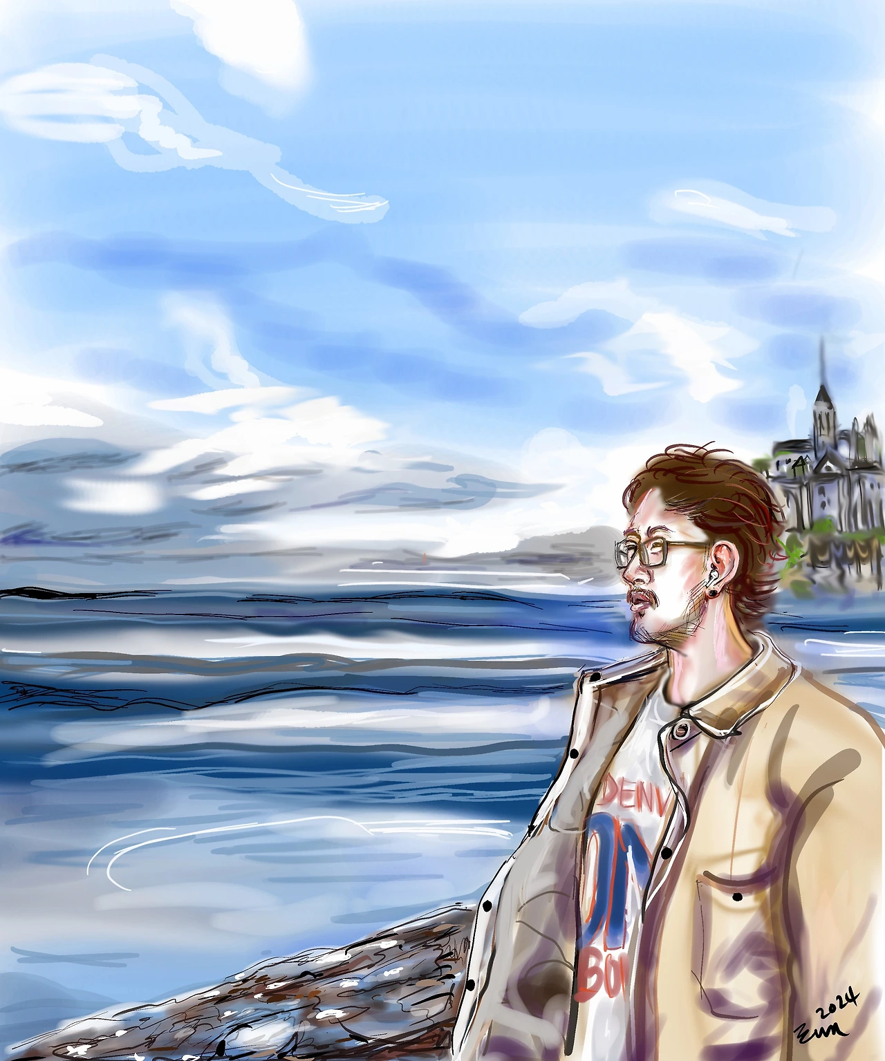 끝없이 펼쳐진 회색빛 바다 위에 걸쳐있는 하얀 포말이 선을 그려 놓은 듯 정체되어 있어 여백이 돋보이는 수채화그림 같다