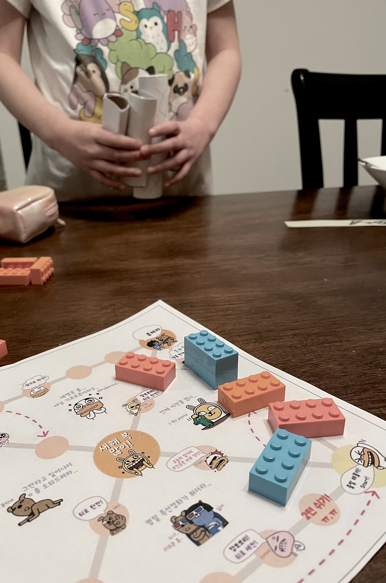 빨간색 레고 4개, 노란색 레고 4개를 챙겼다.