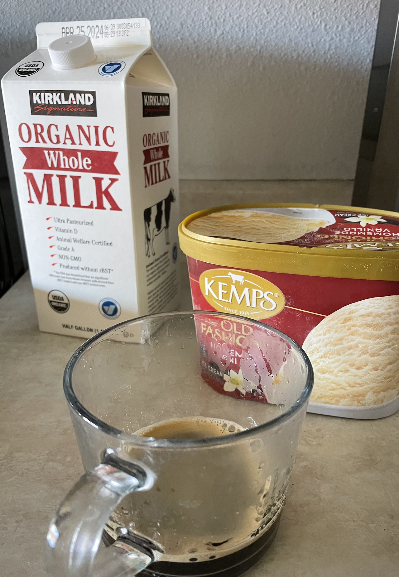 바닐라 아이스크림 두 스푼을 넣은 뒤
