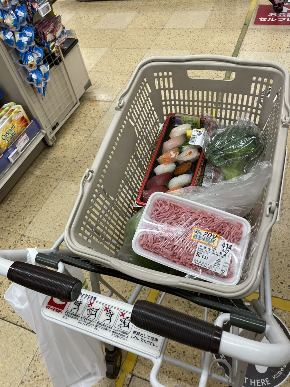 저녁으로 먹을 규동 재료를 사러 슈퍼에 갔다.
