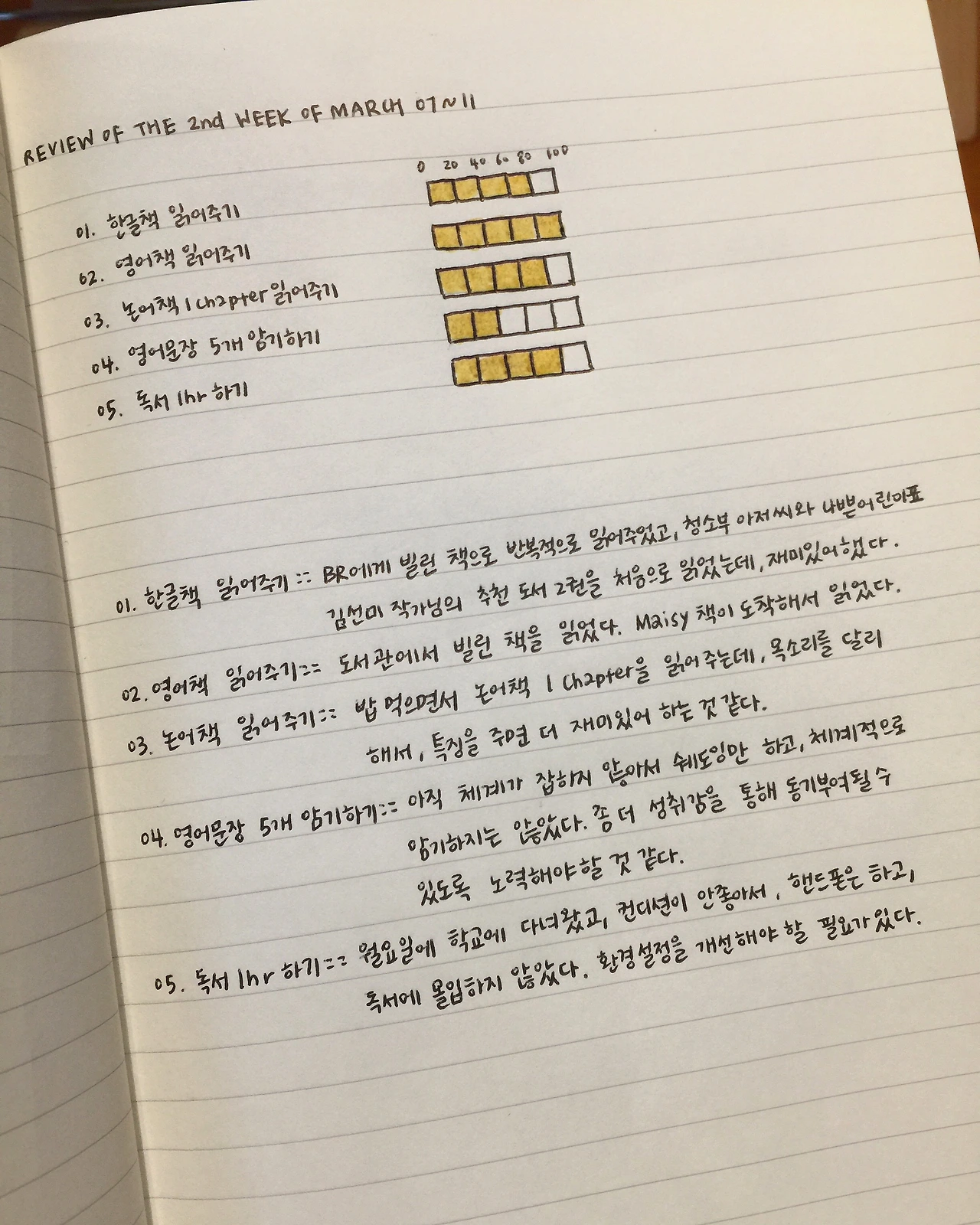 (3) 영어문장 5개 암기하기 실행률: 40%