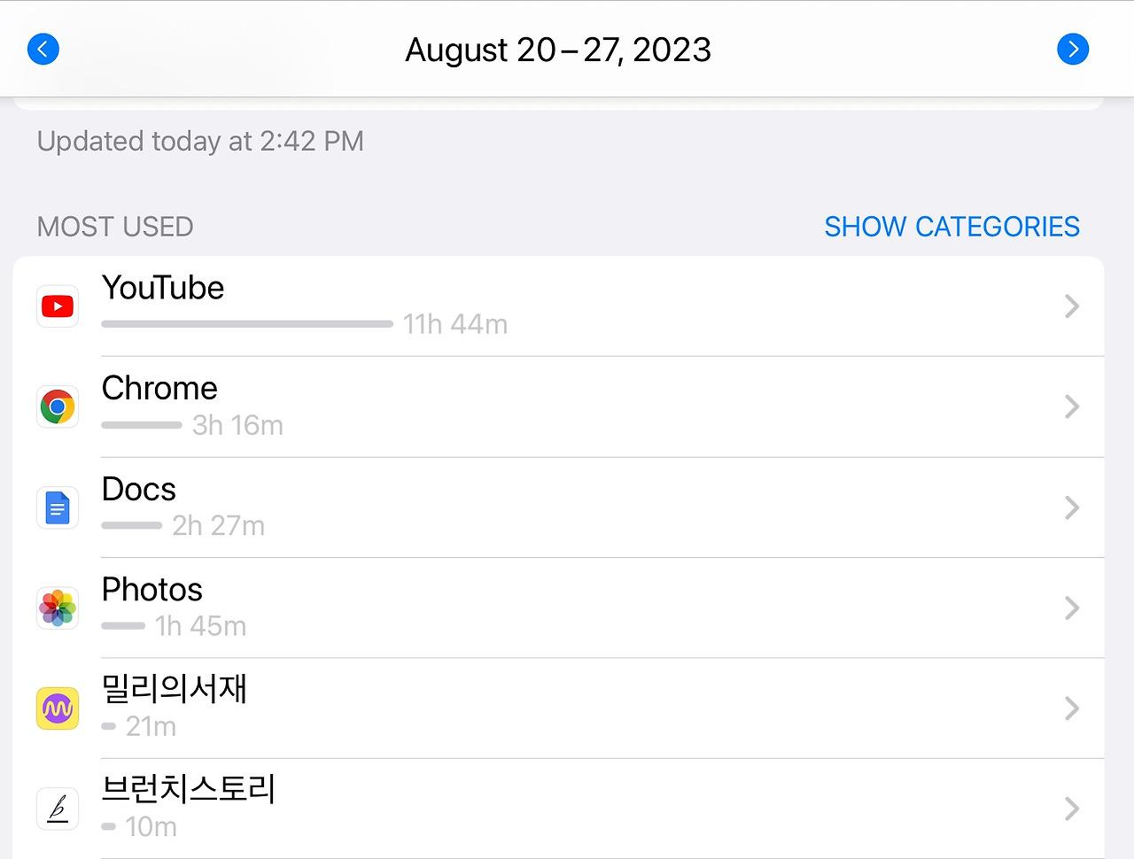 스크린 타임으로 앱 사용 시간을 확인한 뒤
