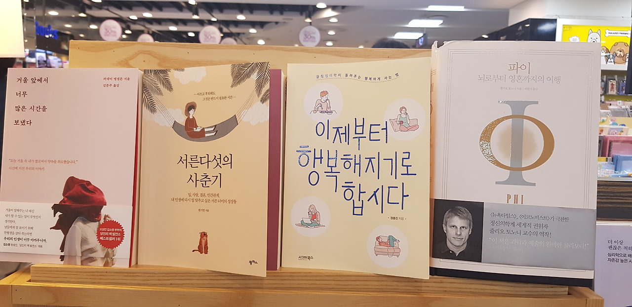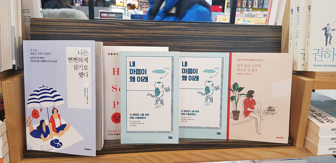 그런 시대에 매대를 장악하고 있는 인문서는 대부분 심리학 책이었으며, 그 심리학 책들은 예전의 심리학 책들과는 또 다른 느낌이다. 예전엔 그래도 어떤 다양성이 있었던 것 같은데, 요즘은 모두가 한 방향이다. '타인의 시선에서 자유로워지는 법', '자존감', '나 자신의 삶을 살기', '불안에서 헤어나오는 법'. 모두 같은 주제, 다른 어휘일 뿐이다. 얼마나 눈치를 보며 살고 있으며, 얼마나 획일화된 사회 기준에서 헤어나오고 싶으면 이런 책들이 오랫동안 주류를 이루는지. 경기 불황 때문에 패션업계 쪽에서도 전혀 다양한 옷들이 나오고 있지 않다는데, 미래가 보이지 않는 압박감과 도태되어 영원히 하류층으로 전락할 것 같은 불안감으로 인해 서로가 서로를 물어뜯는 혐오사회인 오늘의 대한민국 서점 매대는, 타인을 제대로 경계하면서 동시에 타인으로부터 자유로워지는 심리라는 한 방향 주제의 책들로 장식되어 있었다. 온종일 긴장을 풀 수 없는 사회! 대한민국 만세 만세 만만세! (이렇게 정신줄을 놓아가는구나!)