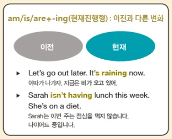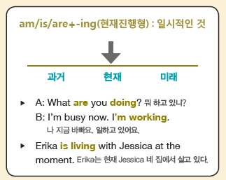 (am/are/is) ~ing를 쓰는 '현재진행형'은 '지금(현재)'에만 해당하는 일시적인 시간 개념입니다.