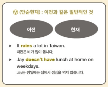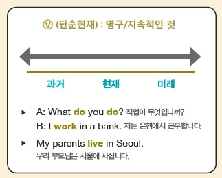 그냥 동사 그대로 쓰는 '단순현재'는 과거-현재-미래에 걸쳐 지속되는 시간 개념입니다.