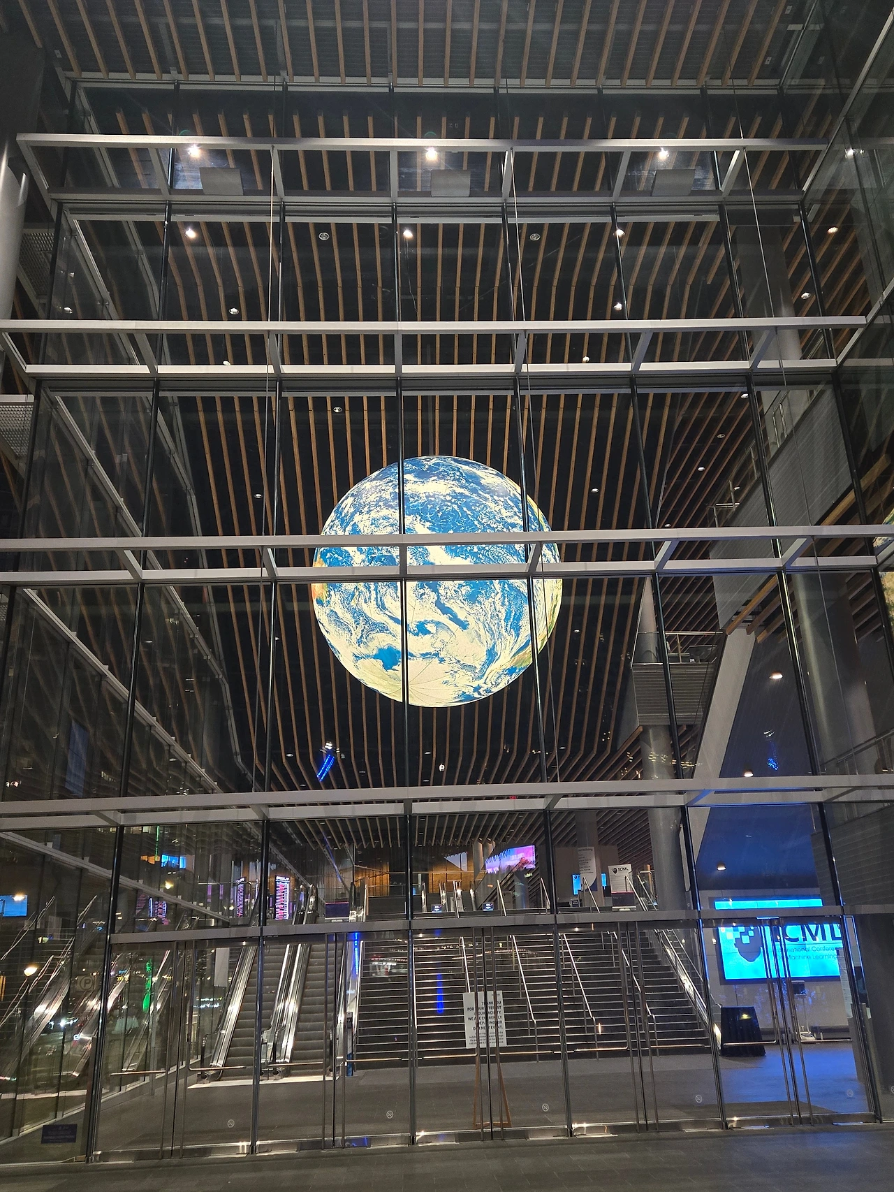 그 뒤로 이어진 컨벤션 센터는 유리와 철의 선들이