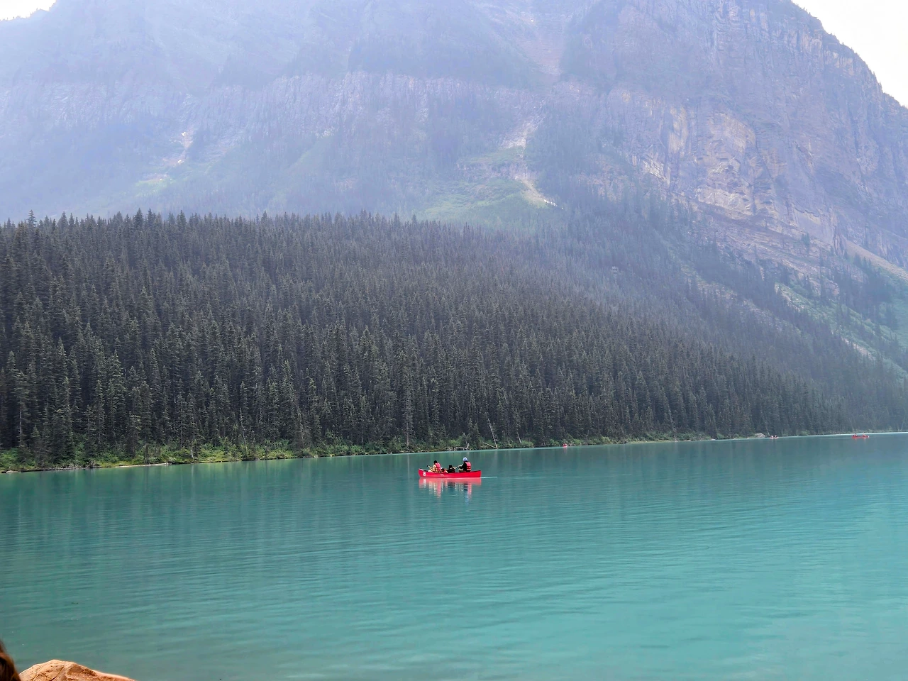 창밖의 에메랄드빛 호수는