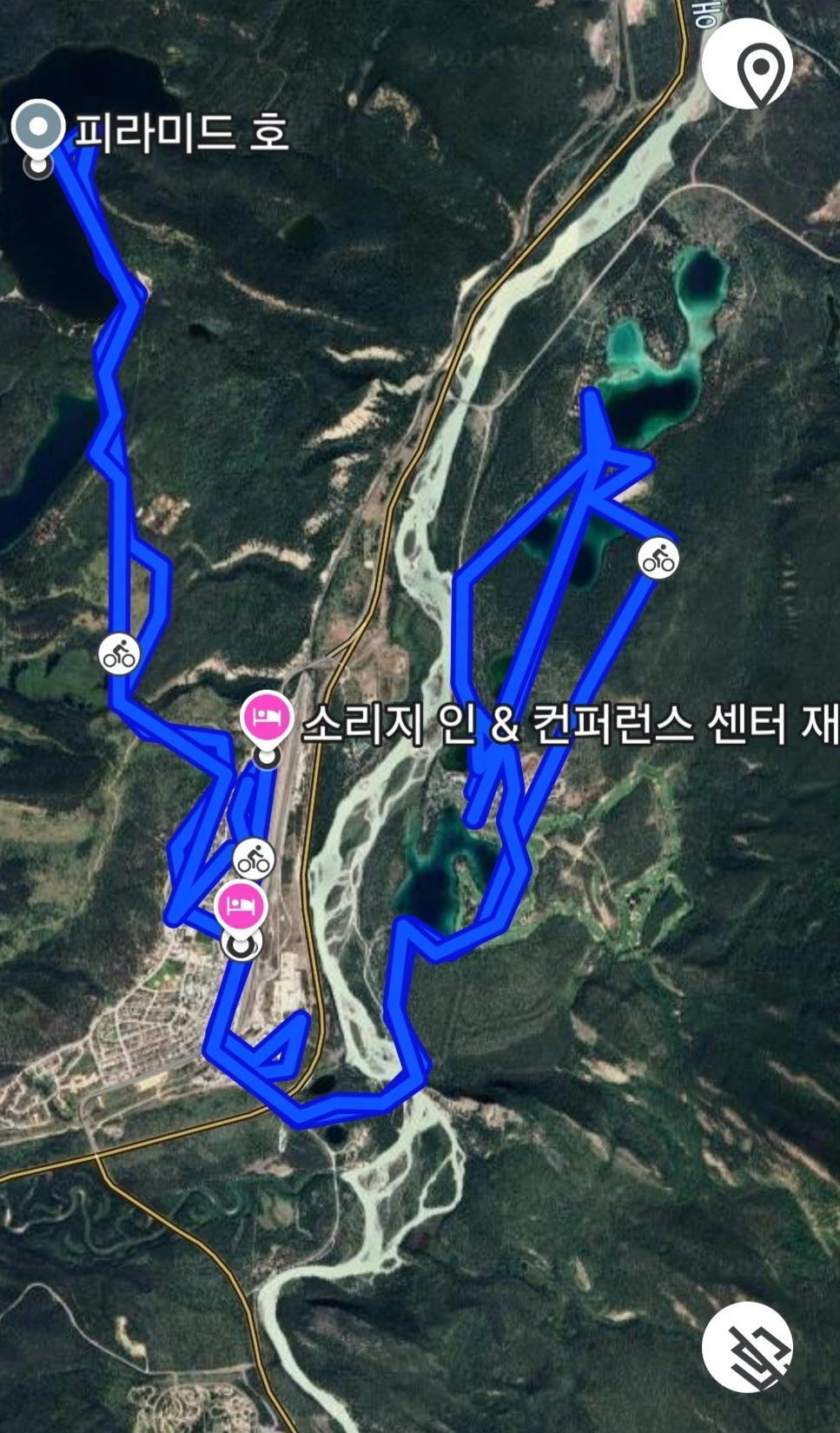 자전거 운행지도. 재스퍼 호수.