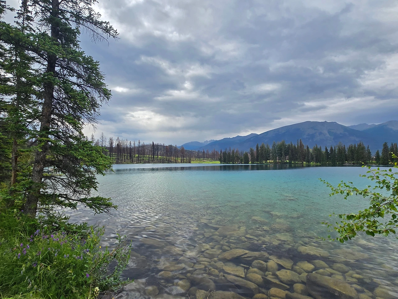 흐린 날엔 호수 안쪽이 오히려 더 밝게 빛난다.