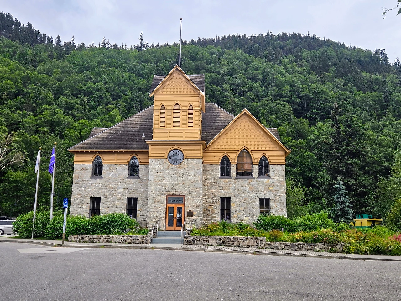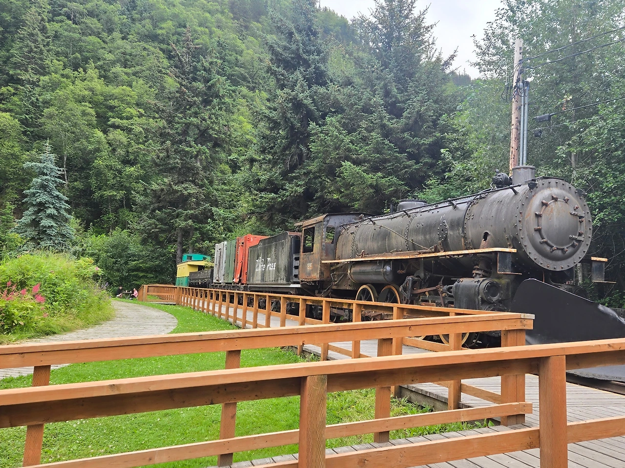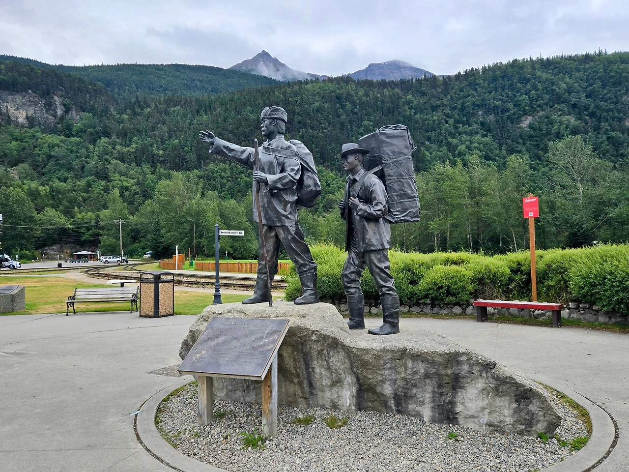 골드러시 기념 동상. 증기기관차 – 화이트패스 철도의 살아있는 증거