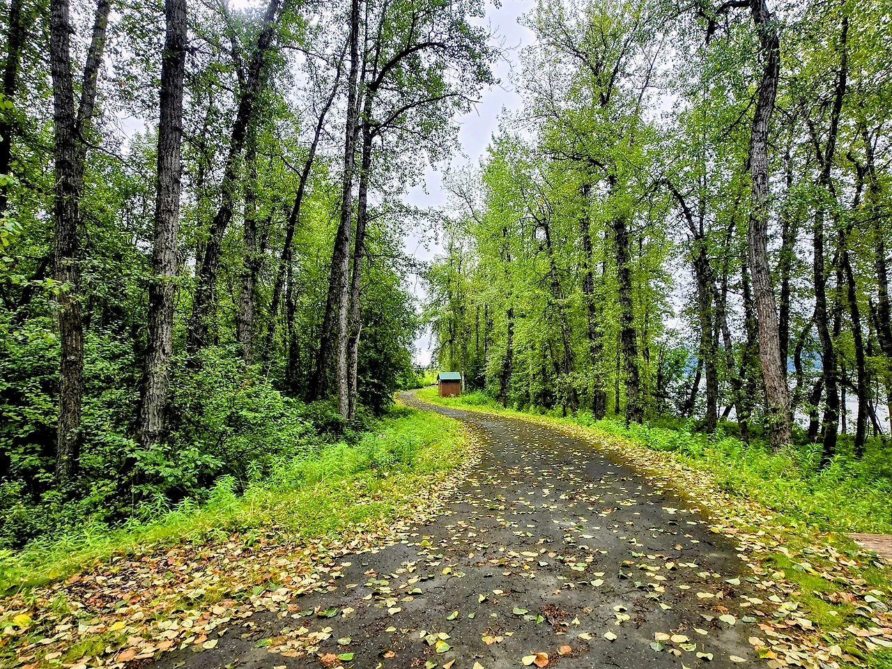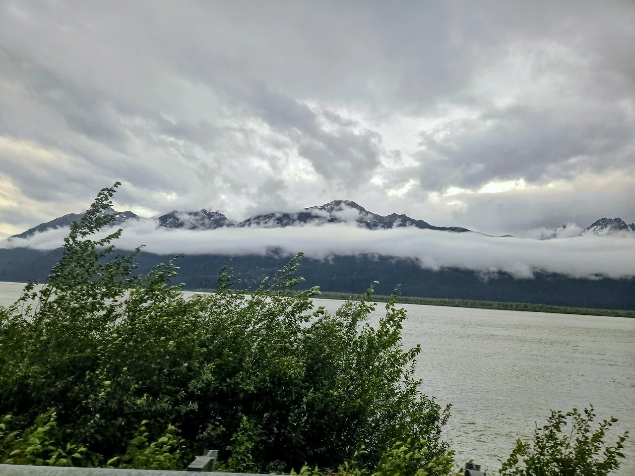 칠캣강 산책로, 독수리 서식지 인근. 알래스카 하이더 강변, 흐린 날의 낮은 구름