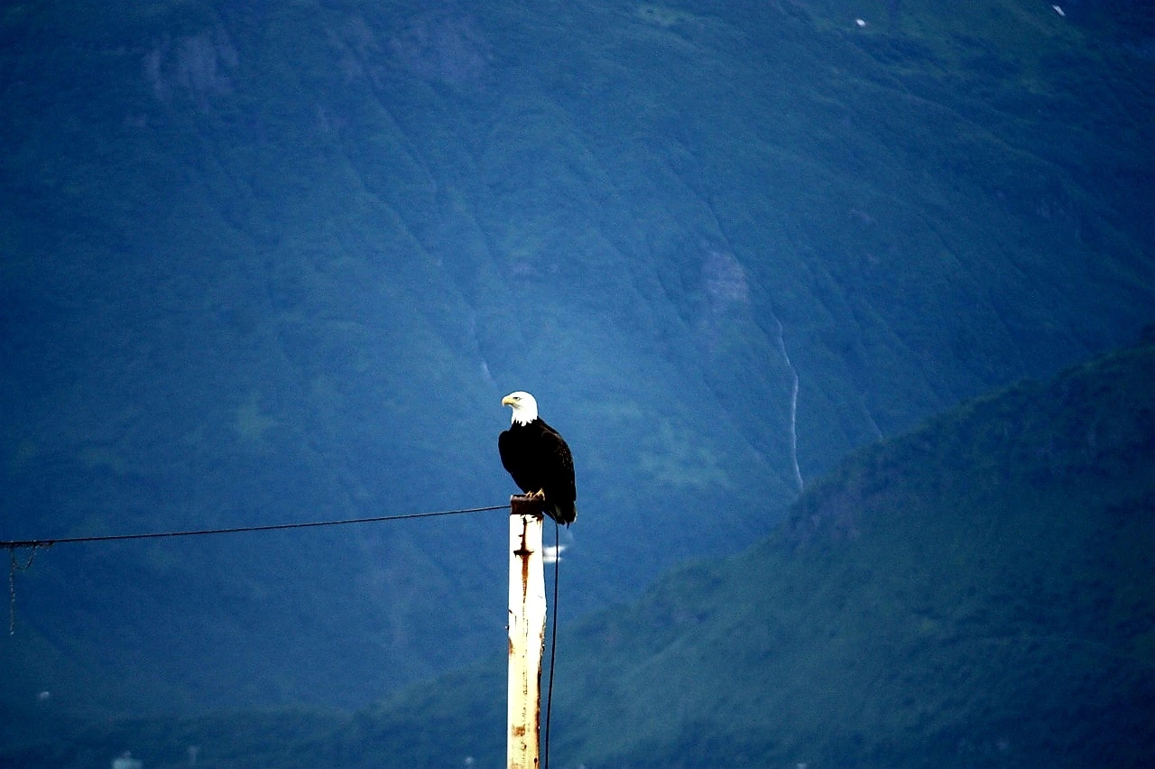 하얀 머리의 독수리 한 마리가