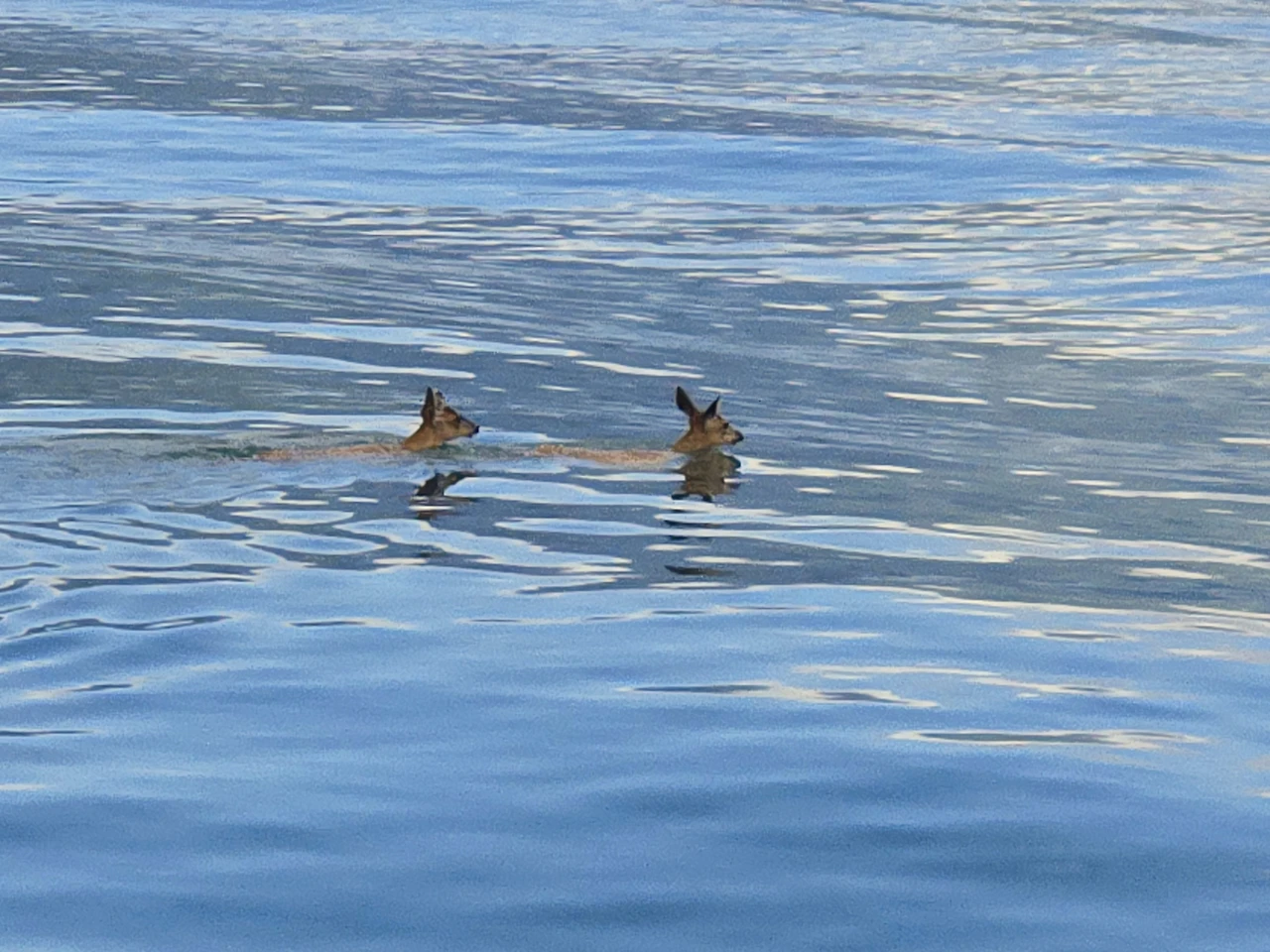 **바다를 건너는 두 마리의 사슴.**