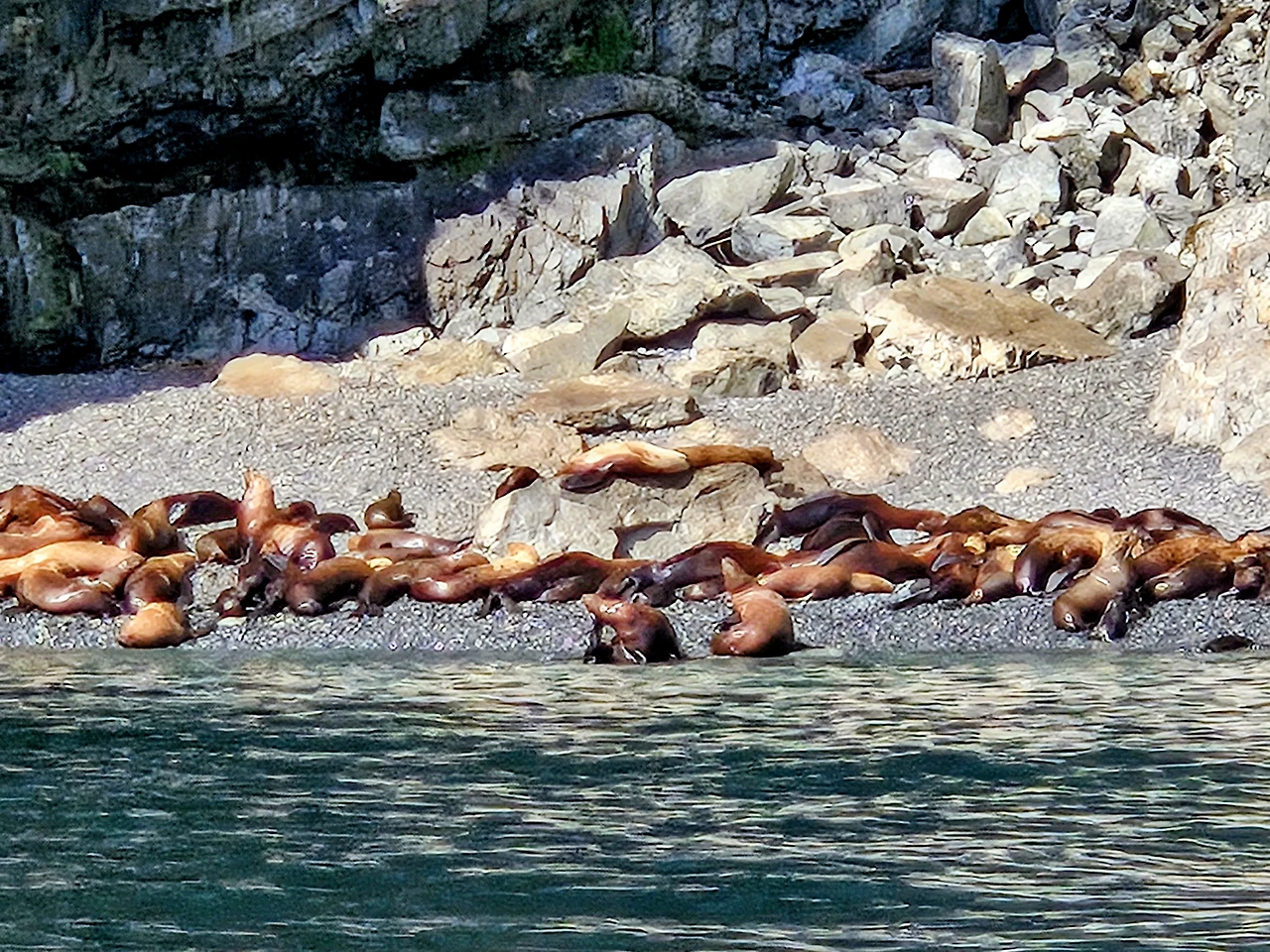바다사자 무리가 있는 해안에 닿았다.