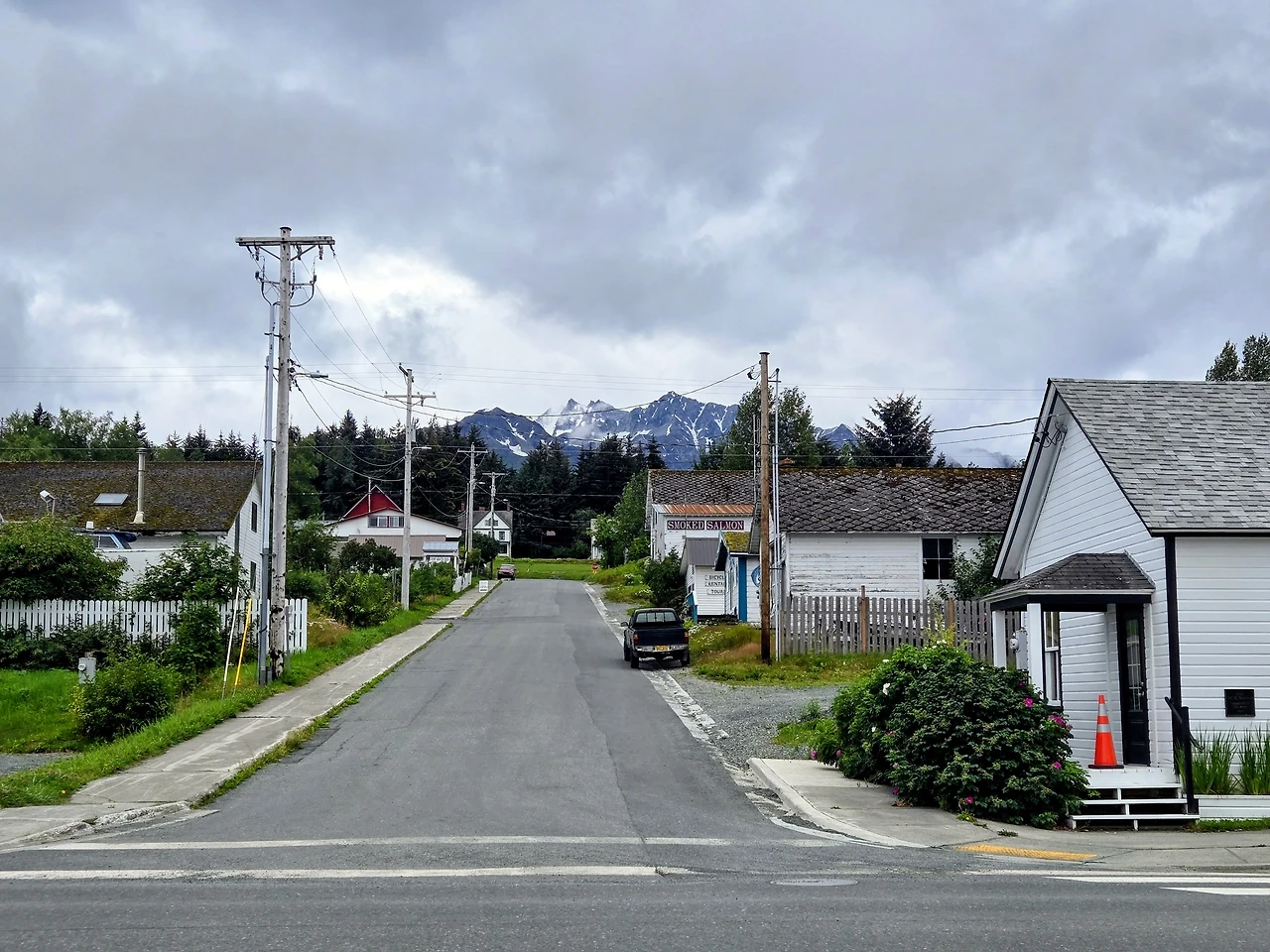 우리는 작은 항구 마을 **헤인스(Haines)** 위 언덕에 올랐다.