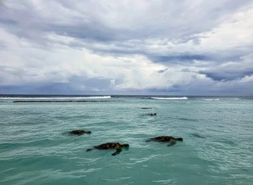 섬 북쪽, 거북이 포인트가 있는 바다 바로 앞이었다.
