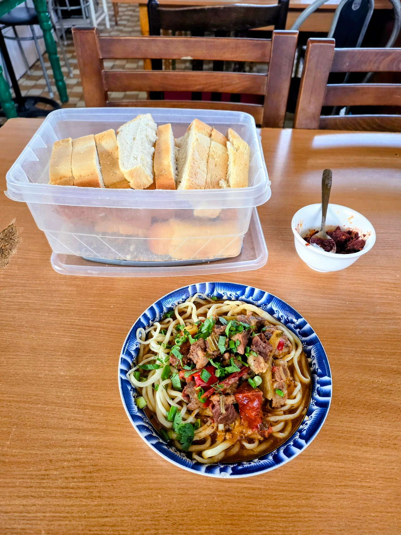 그릇을 들고 한쪽에 서 있었는데