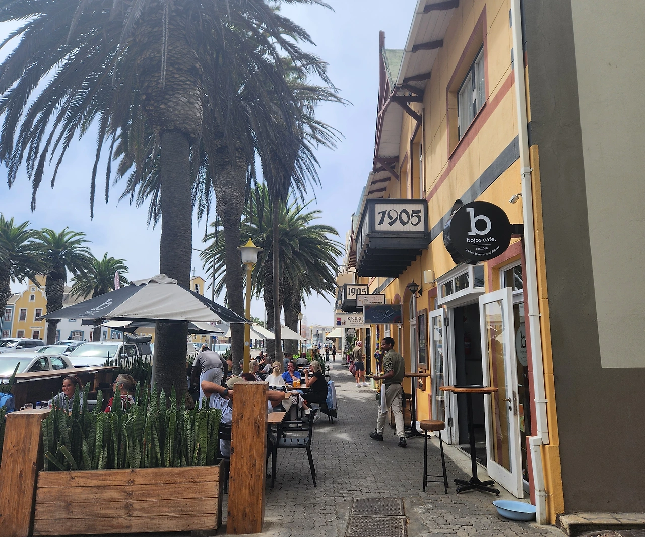 스와코프문트 시내 거리. 왈비스 베이 전망 선착장