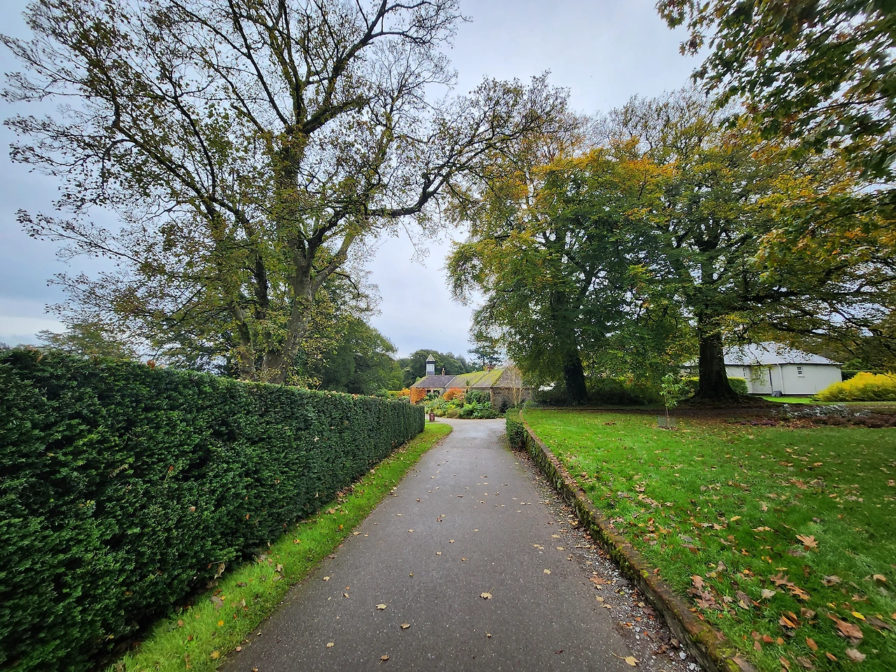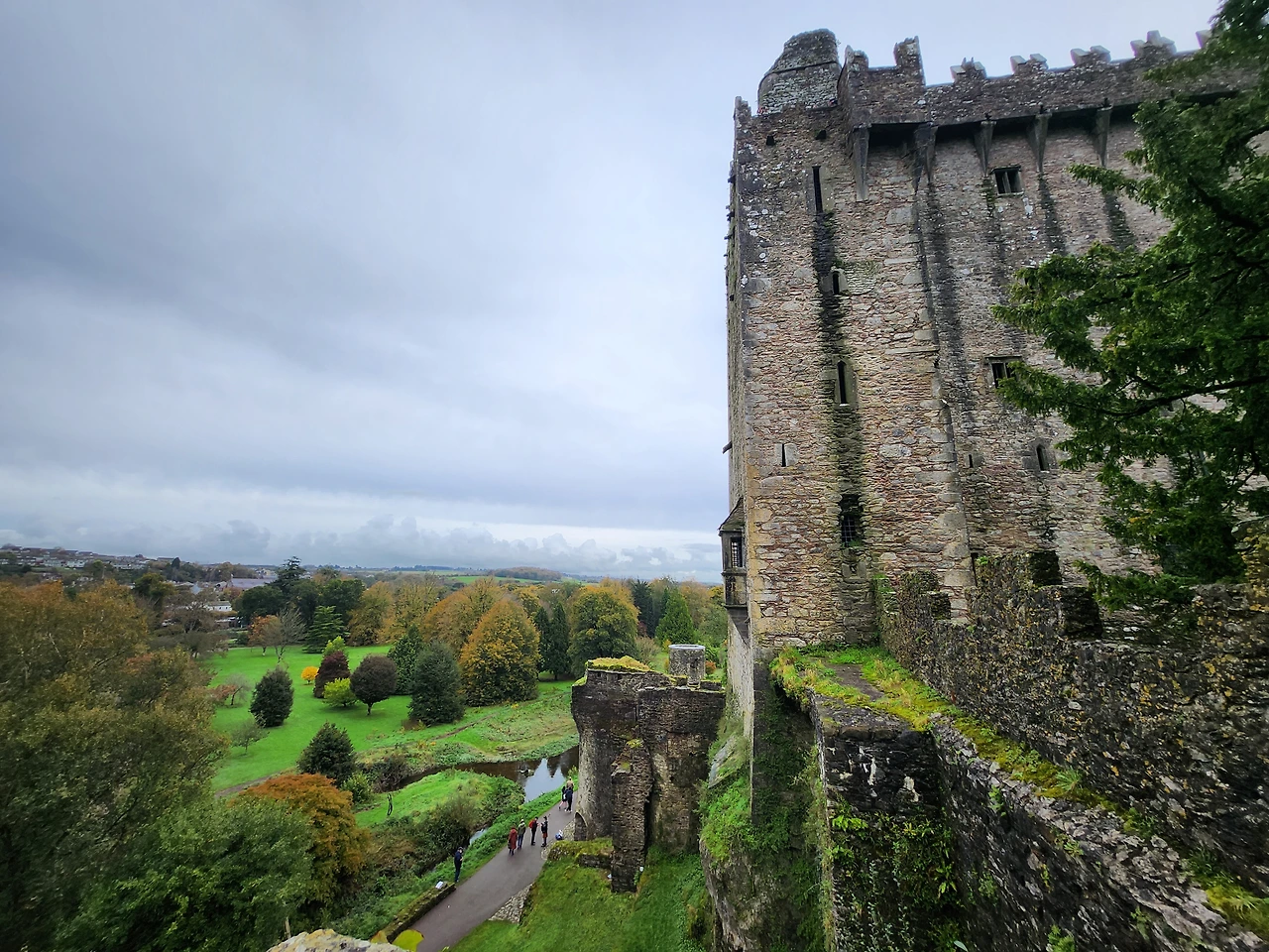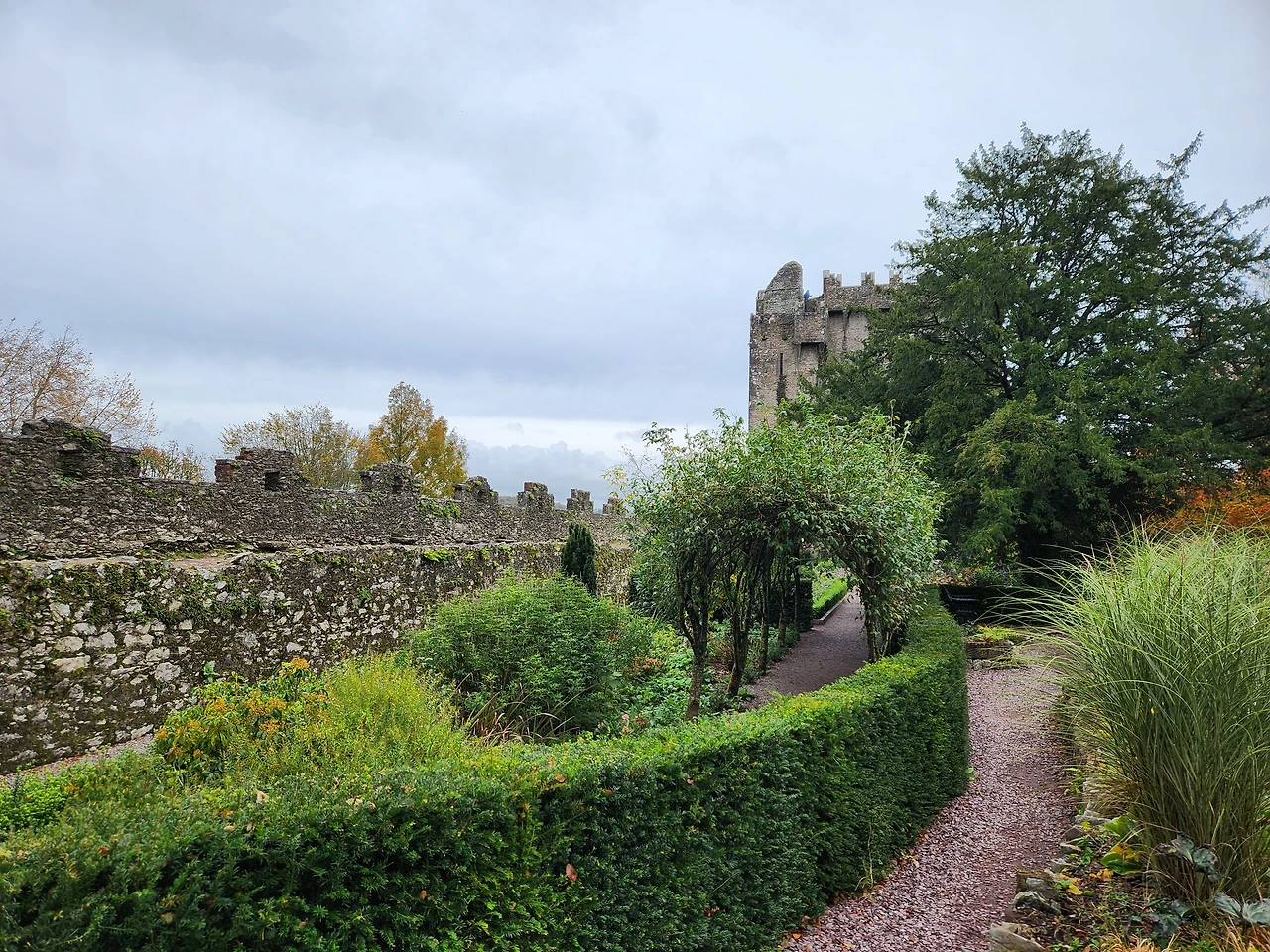 블라니 성 외벽과 나무들 코크 외곽 공원 산책길