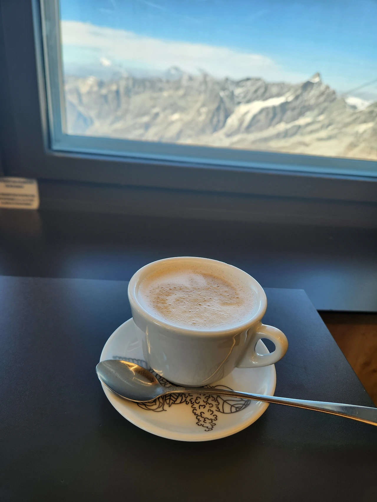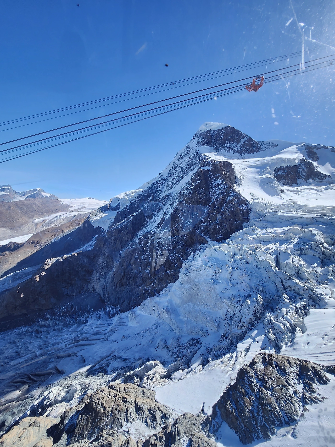 케이블카 창 너머로 보이는 스위스 알프스. 마테호른 커피숍.