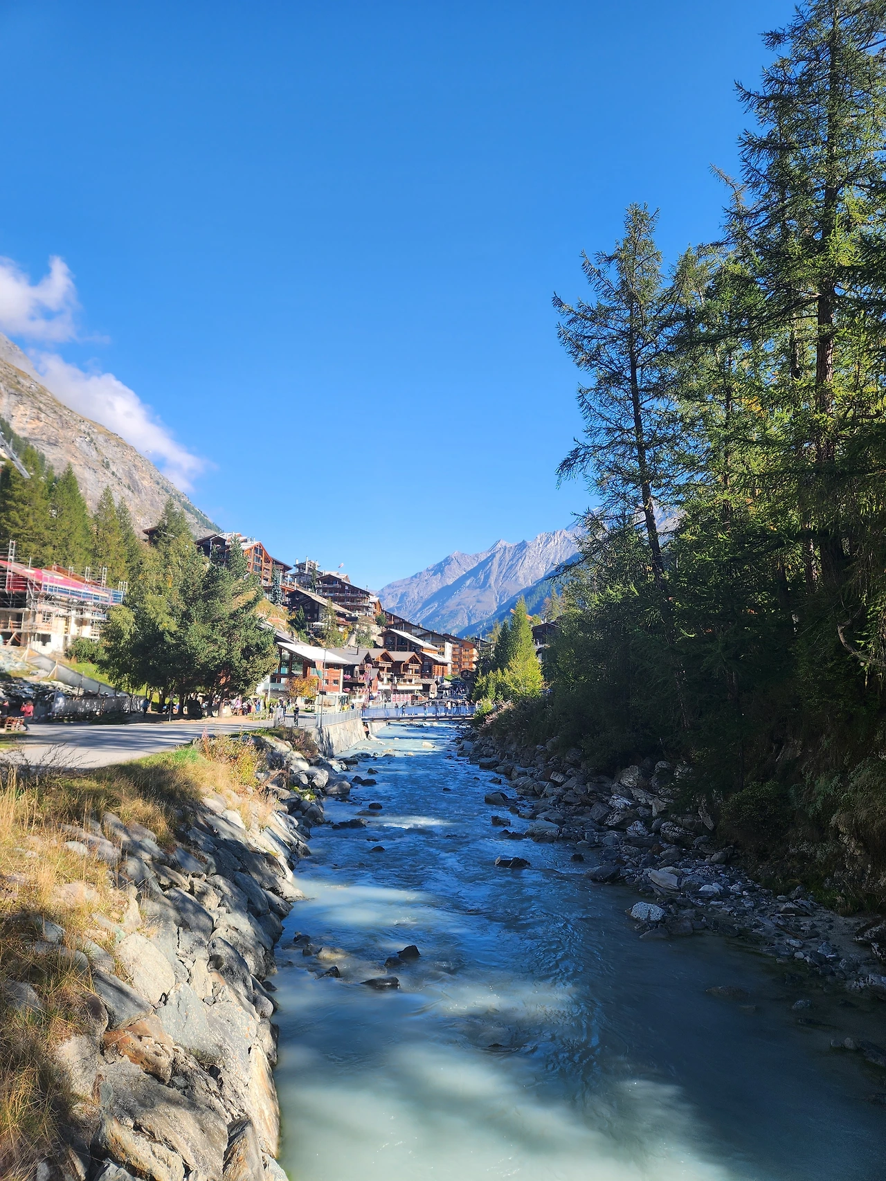 마테호른 방향으로 이어지는 강변. 체르마트 산책길에서 바라본 계곡 체르마트 구시가지 골목