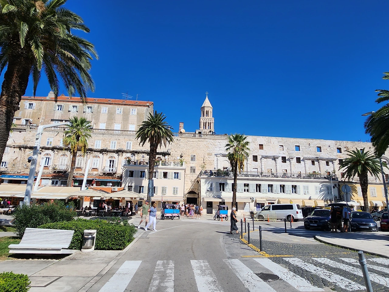 스플리트 구시가지 외곽. 페리스틸 광장 주변 거리. 마르얀 해변 (Marjan Beach)