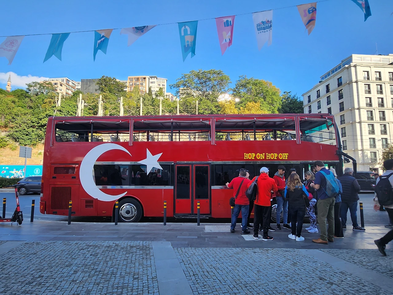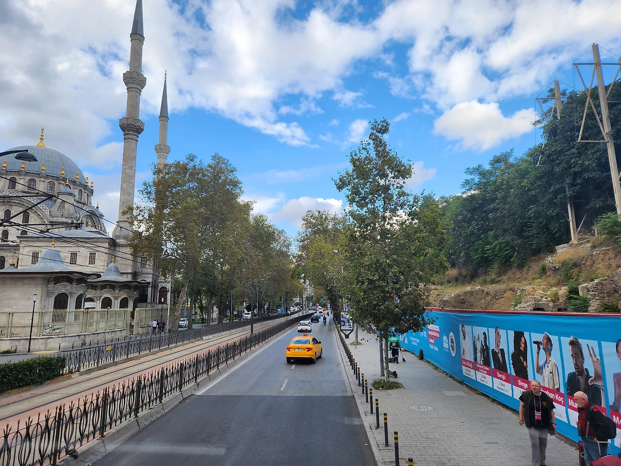 왼쪽 술탄 아흐메트 자미. 탁심 광장 관광버스