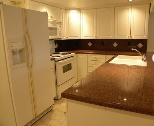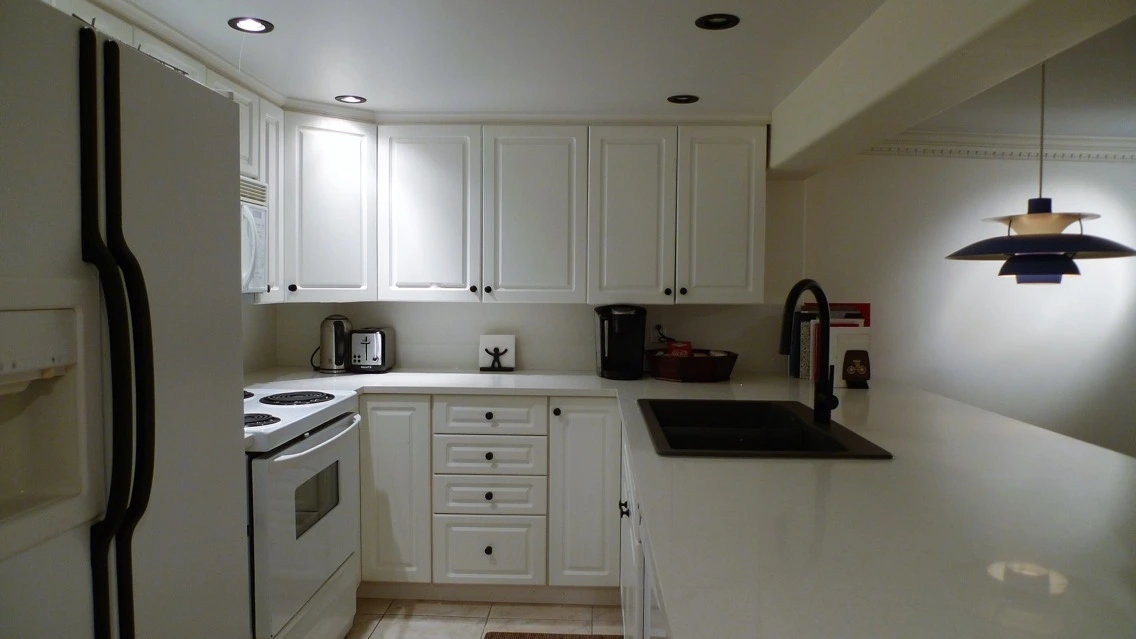 부엌은 수리 비용 대비 매우 큰 만족을 얻은 공간이다. 수리 전의 부엌도 자주색 대리석 상판 외에는 깔끔하게 되어 있어서 크게 수리할 곳이 별로 없었다. 하지만 자주색 대리석 상판은 공간을 너무 치명적으로 촌스럽게 만들어서 무언가 방법을 찾아야 했다. 새 대리석으로 바꾸자니 비용이 만만치 않고 기존의 대리석도 아까워서 필름을 붙이거나 도색 등 여러 방법으로 고민하다 결국 사장님과 상의하였다. 사장님께서는 우리가 몰랐던 대리석 상판에 금이 간 것을 알려주셨고 언제 가는 교체를 해야 할 듯하니 본인 옆집 사람이 대리석 상판 교체하는 일을 하는데 원하면 소개해 주실 수 있다고 하셨다. 그리고 사장님 소개 덕분에 우리는 다른 업체에서 견적 받았던 가격의 절반도 안 되는 가격으로 부엌과 화장실의 자주색 대리석 상판을 내가 원하는 깔끔한 하얀색 대리석 상판으로 바꿀 수 있었다. 그리고 그 결과는 꽤 만족스러웠다.