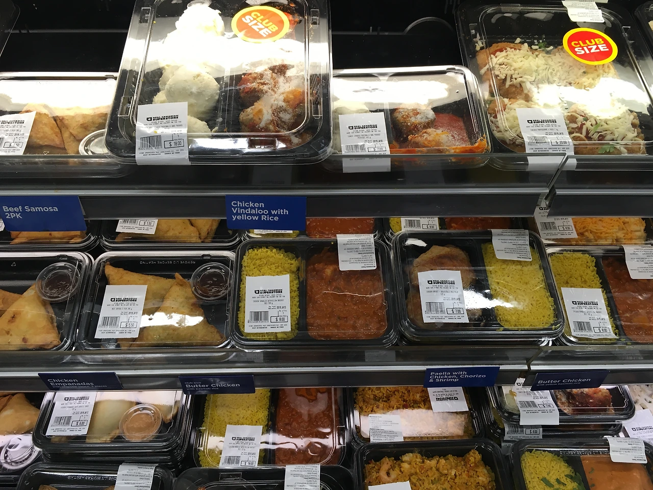 할인마트이기 때문에 델리는 따로 없지만 샐러드와 스시부터 피자 로스트 치킨등 다양한 나라 스타일의 데워먹을 수 있는 조리된 음식을 미리 담아 놓고 팔고 있다. 하지만 양이 많아서 신랑 말로는 대가족외에는 하우스 파티처럼 친구들이 많이 모일 때 이곳에서 음식을 산다고 한다.