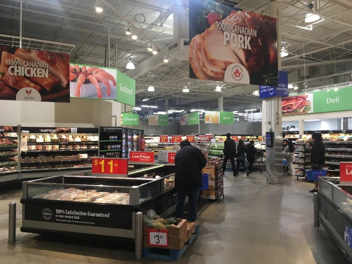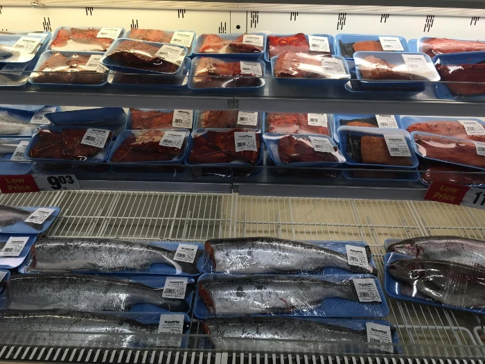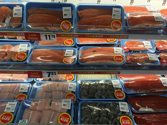 월마트에는 없는 온갖 부위로 나뉘어 포장된 다양한 종류의 육류는 물론 손질된 생선들과 살아 있는 랍스터 나 홍합 같은 신선한 해산물도 구입할 수 있다. 특히 캐나다 특산품인 연어는 자연산과 스틸헤드와 같은 여러 다른 종류의 연어를 스테이크 컷부터 훈제 혹은 양념되어 조리된 스타일까지 다양한 연어를 저렴한 가격에 구입할 수 있다.