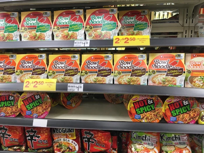 한국 라면의 인기는 동네 편의점만 가도 쉽게 느낄 수 있다. 라면 판매대 한 부분이 한국 라면으로 채워져 있는 경우가 많고 심지어 로키산에 있는 밴프(Banff) 다운타운에 있는 편의점과 빅토리아 섬(Victoria Island)에 있는 작은 편의점에서도 한국 라면을 쉽게 살 수 있었다.