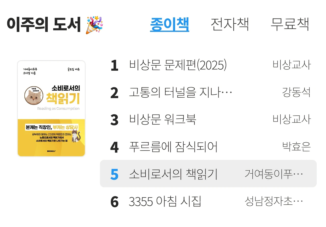 지금은 POD와 이북이 교보, 알라딘, 영풍 등에 등록되기를 기다리며, 12/19일 출간기념회도 준비 중입니다. 현재는 지인분들이 구매해 주시는 게 대부분이지만 부크크에서는 이주의 책 5위까지 오르기도 했네요. 감격스럽고 행복한 요즘입니다.